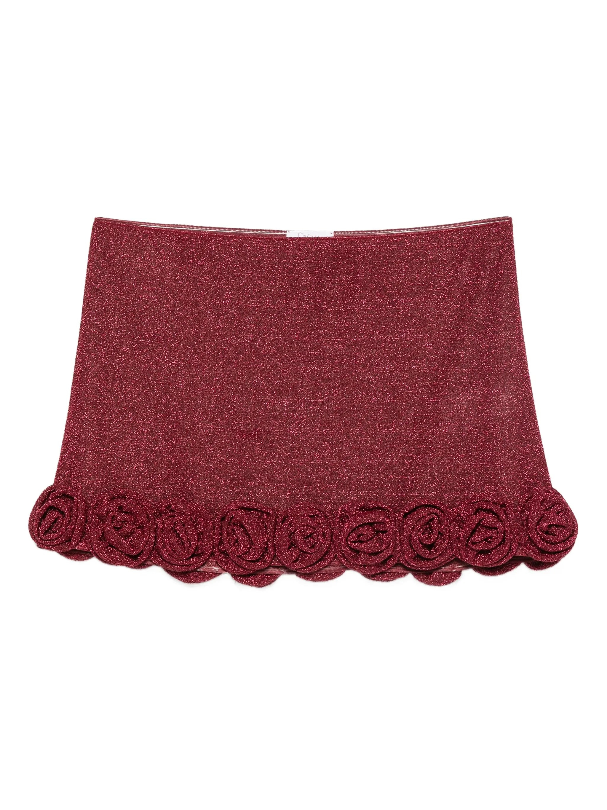 - burgundy - elasticated waistband - floral applique Materials & Product Care Lining: Elastane 18%, Polyamide 82% Outer: Metallic Fibre 36%, Polyamide 64% Size & Fit - Made from a lightweight fabric - This mini-length skirt is intended to be worn low on the hips - The model is 1.75 m wearing size S.
