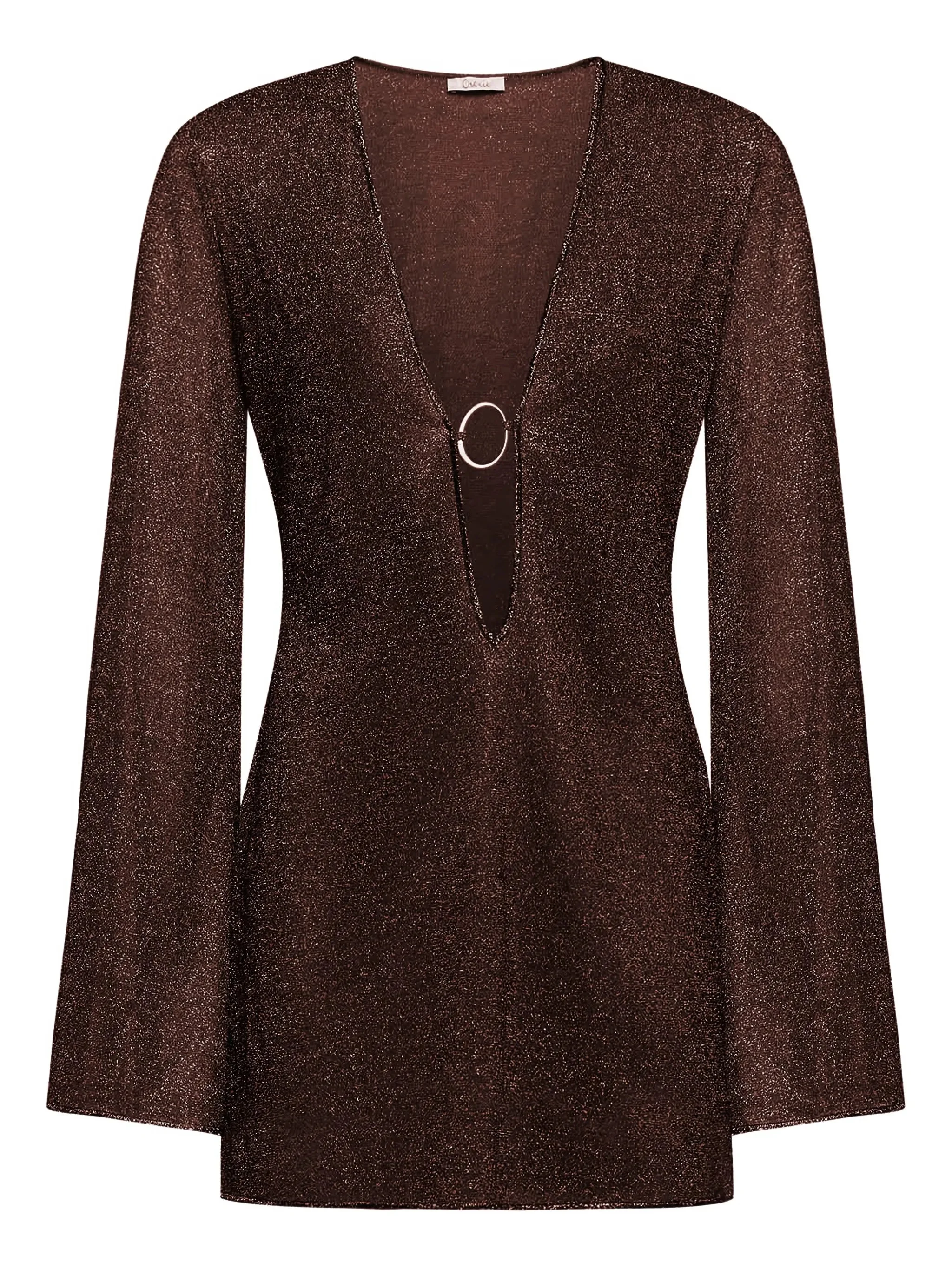 - brown - V-neck - ring detail - long sleeves - mini length Materials & Product Care Fabric 100%