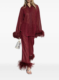 - burgundy red - lurex finish - feather embellishment - elasticated waistband - side pockets Materials & Product Care Lurex 100%, Ostrich Feather 100%, Polyamide 100%