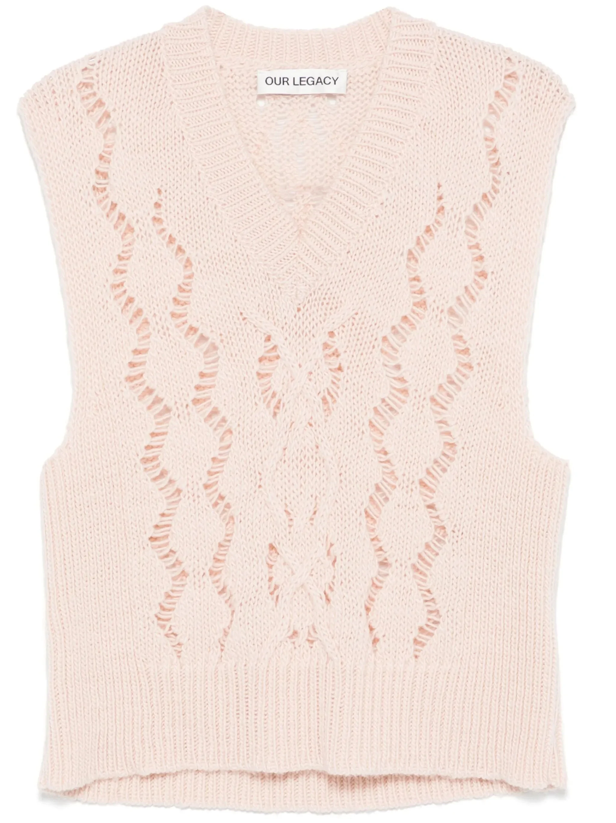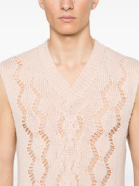 - light pink - chunky cable knit - fisherman's knit - ribbed V-neck - sleeveless - ribbed cuffs and hem Materials & Product Care Wool 100% Size & Fit - Designed for a slim fit, offering a comfortable fit that sits just away from the body - Made with a midweight knit, this piece offers some stretch - The model is 1.87 m wearing size 48.