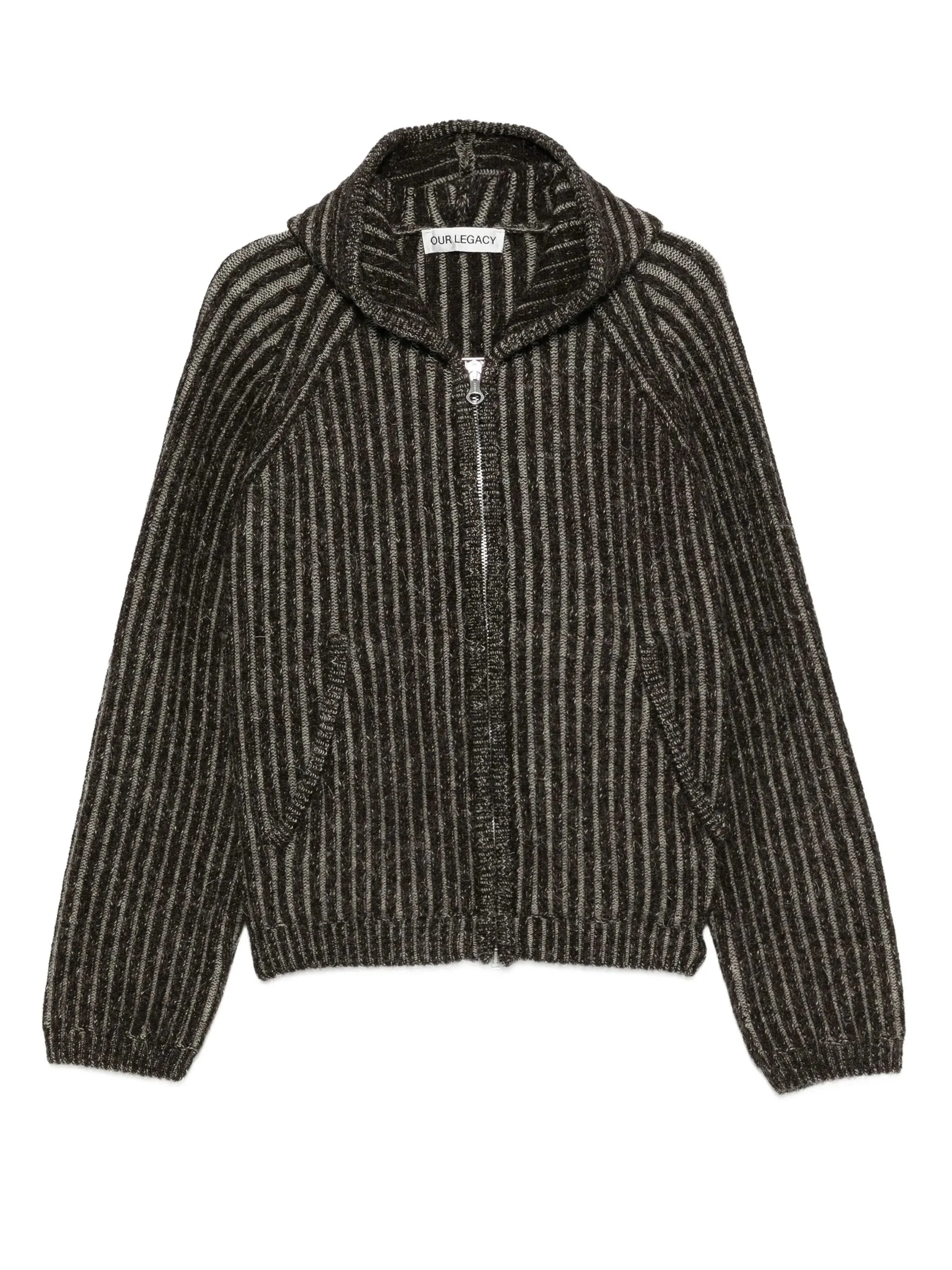 - brown - striped pattern - hooded - raglan sleeves - two-way zip fastening - front pouch pockets - knitted construction - ribbed cuffs and hem - straight hem - relaxed boxy fit Materials & Product Care Virgin Wool 100% Size & Fit - The model is 1.73 m wearing size 38.