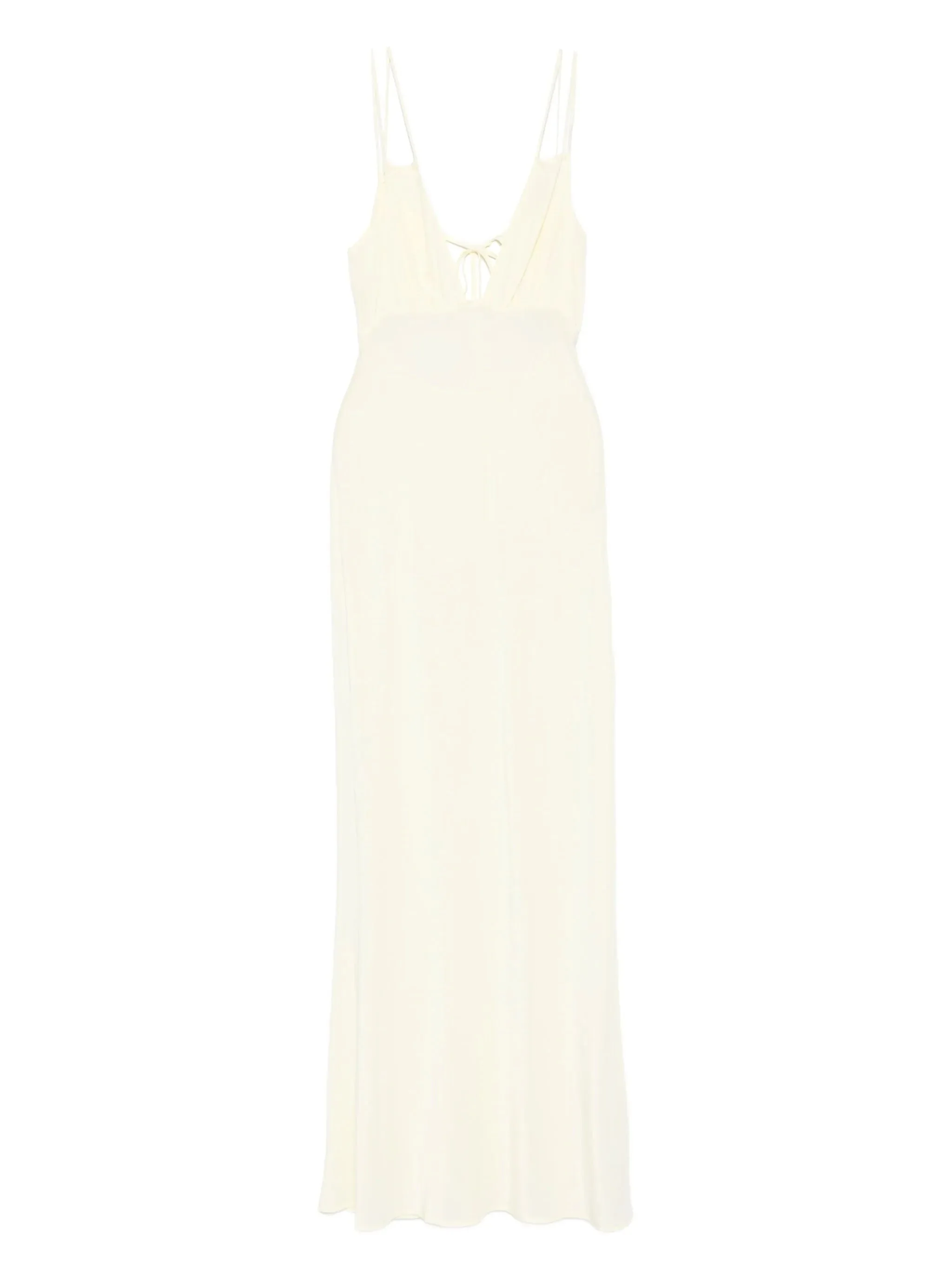 - yellow - silk - spaghetti straps - rear tie fastening - v-neck - maxi length Materials & Product Care Silk 100% Size & Fit The model is 1.75 m wearing size S.