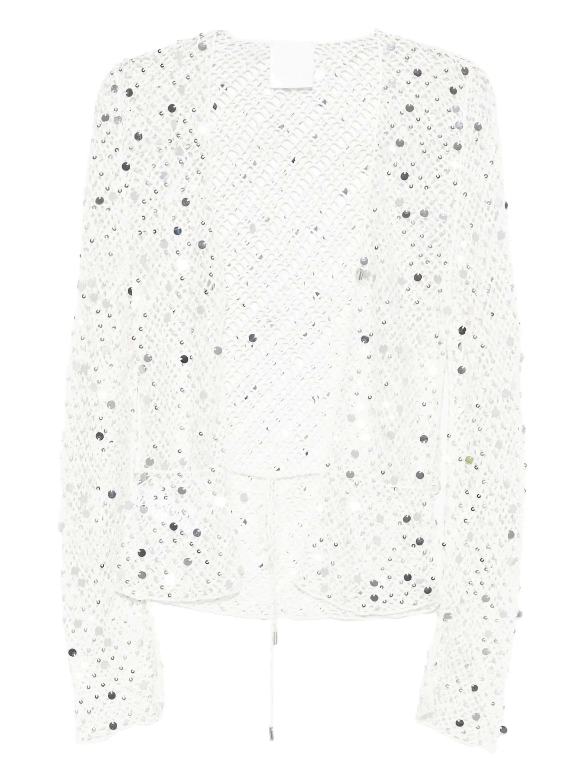 - cream - sequin embellishment - long sleeves - open front - drawstring fastening - net fabric Materials & Product Care viscose 100% Size & Fit - The model is 1.77 m wearing size S.