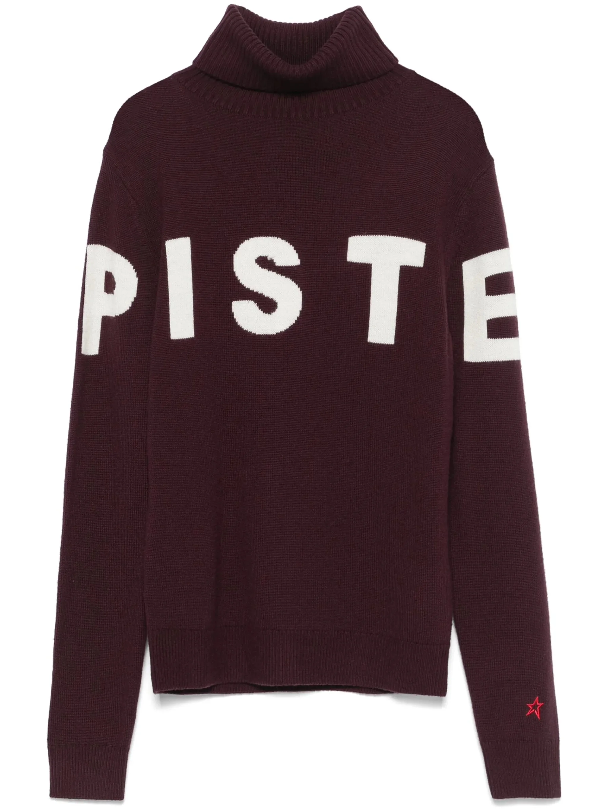- burgundy - merino wool - knitted construction - ribbed turtleneck - Piste intarsia to the front - long sleeves - embroidered logo at the sleeve - ribbed cuffs and hem Materials & Product Care Merino 100% Size & Fit - Designed for a slim fit that sits just away from the body offering a close yet comfortable fit - Made with a midweight knit, this piece offers some stretch - The ribbed hem offers a close, comfortable fit - The model is 1.80 m wearing size S.