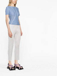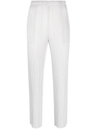 - light grey - plisse effect - high-waisted - elasticated waistband - two side slit pockets - tapered leg - cropped Materials & Product Care Polyester 100% Size & Fit - Designed for a tapered fit, these trousers allow for a close fit at the waist and a loose unrestricted fit over the leg with a closer fit towards the ankle - The elasticated waist allows for a comfortable fit - The pleated construction on this piece allows for additional movement and flexibility in the fit - This piece's size conversion is based on body measurements; for help with this item's sizing, refer to our Size & Fit Guide - The model is 1.75 m wearing size 3.