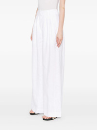 - white - concealed front button, hook and zip fastening - belt loops Materials & Product Care Lining: Cotton 100% Outer: Linen/Flax 100% Size & Fit - Designed with a wide-leg cut, these trousers allow for a close fit at the waist and offer a loose and roomy fit over the leg - Made from a lightweight non-stretch fabric - The model is 1.76 m wearing size XS.