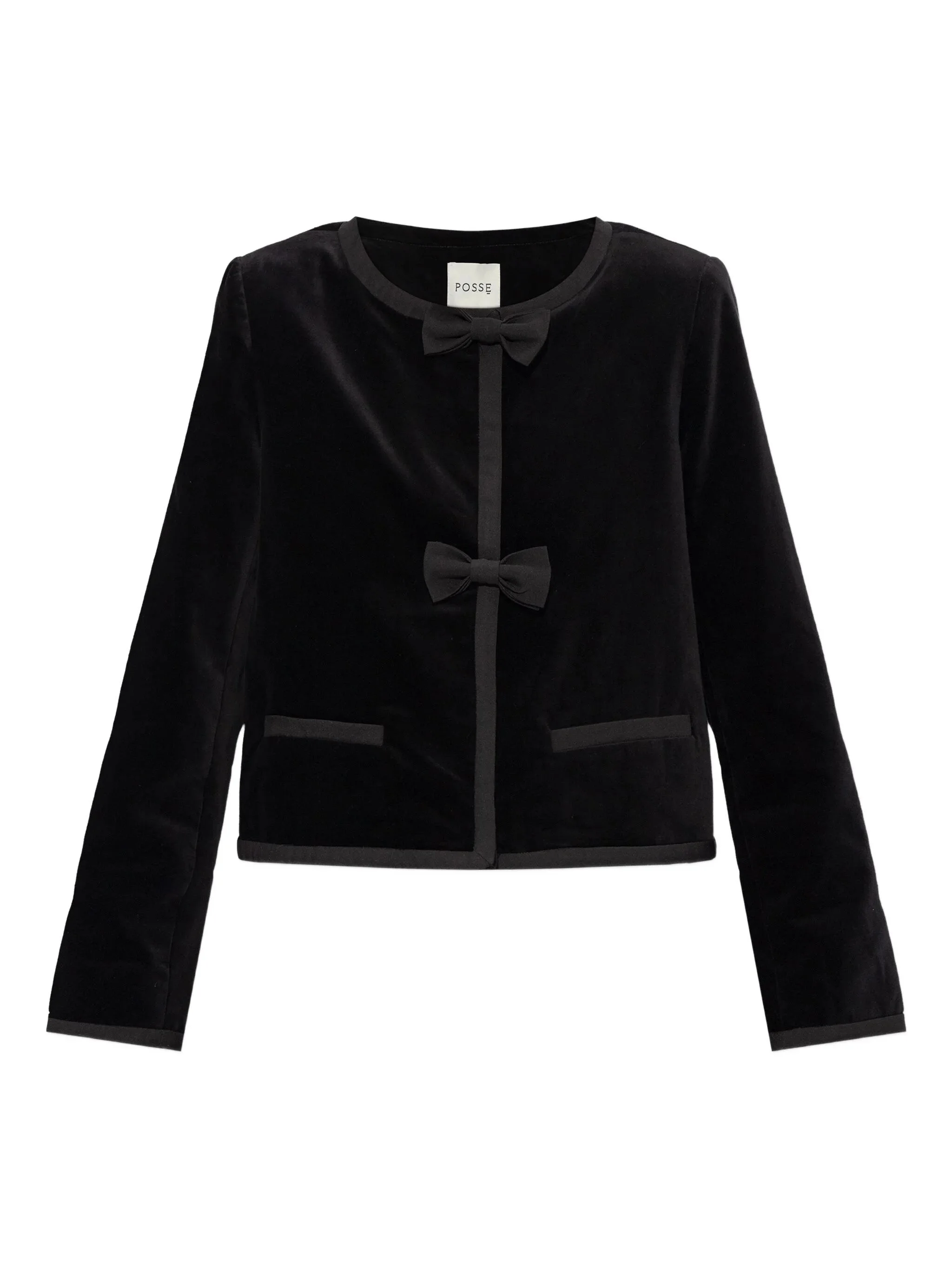- black - bow detail - front pockets - round neck - long sleeves - trim detail Materials & Product Care Cotton 100%