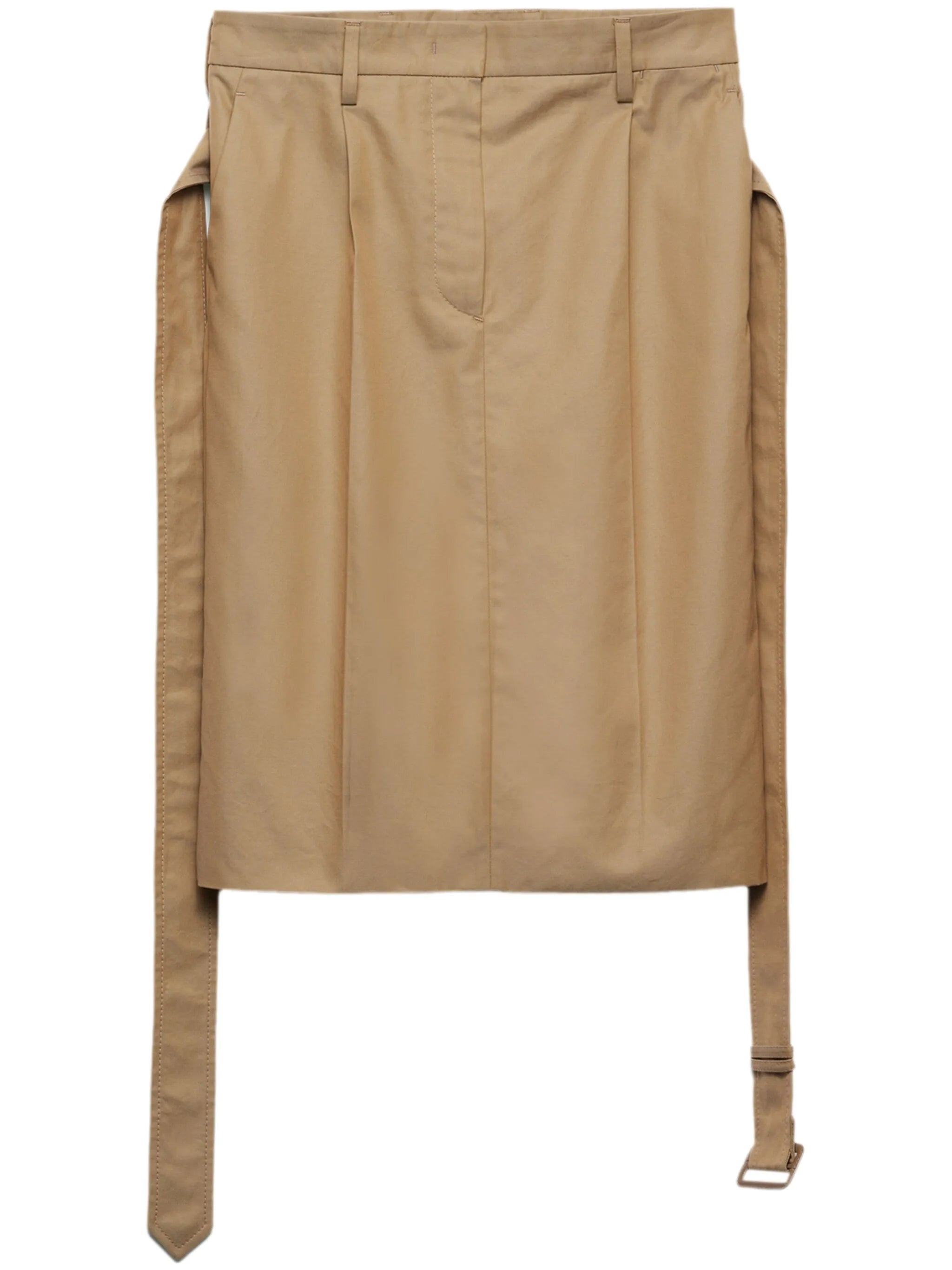 - beige - cotton - twill weave - pleat detailing - pencil silhouette - belt loops - detachable waist belt - hook and zip fly fastening - two side slash pockets - two rear welt pockets - rear slit - straight hem Materials & Product Care Cotton 100%