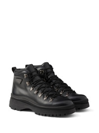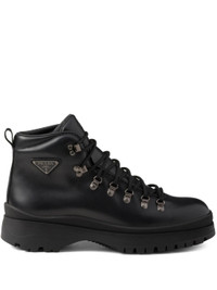 - black - leather - front lace-up fastening - logo patch to the side - pull-tab at the heel - rubber sole - round toe Materials & Product Care Lining: Leather 100% Outer: Leather 100% Sole: Rubber 100%