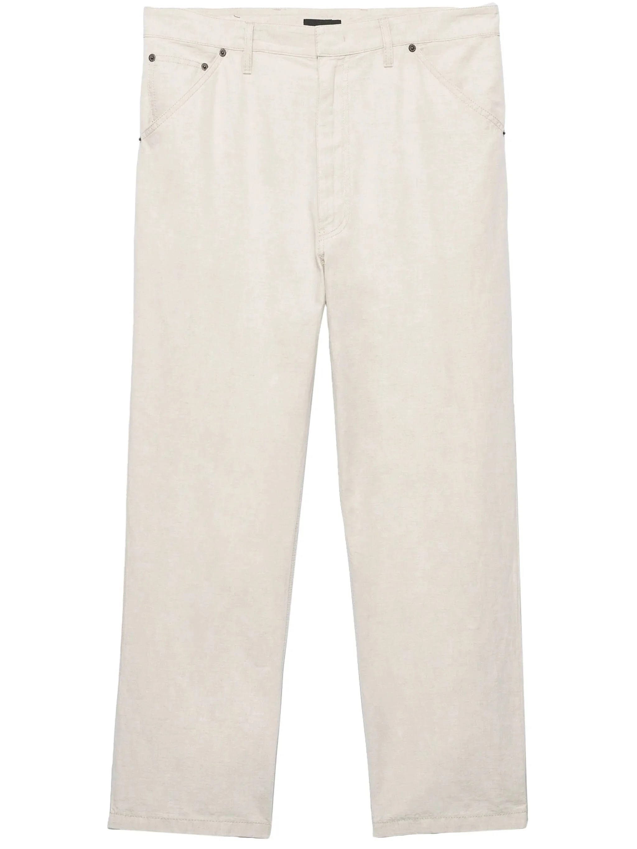 - beige - hook and zip fly fastening - belt loops - classic five pockets - enamel triangle logo Materials & Product Care Cotton 100%