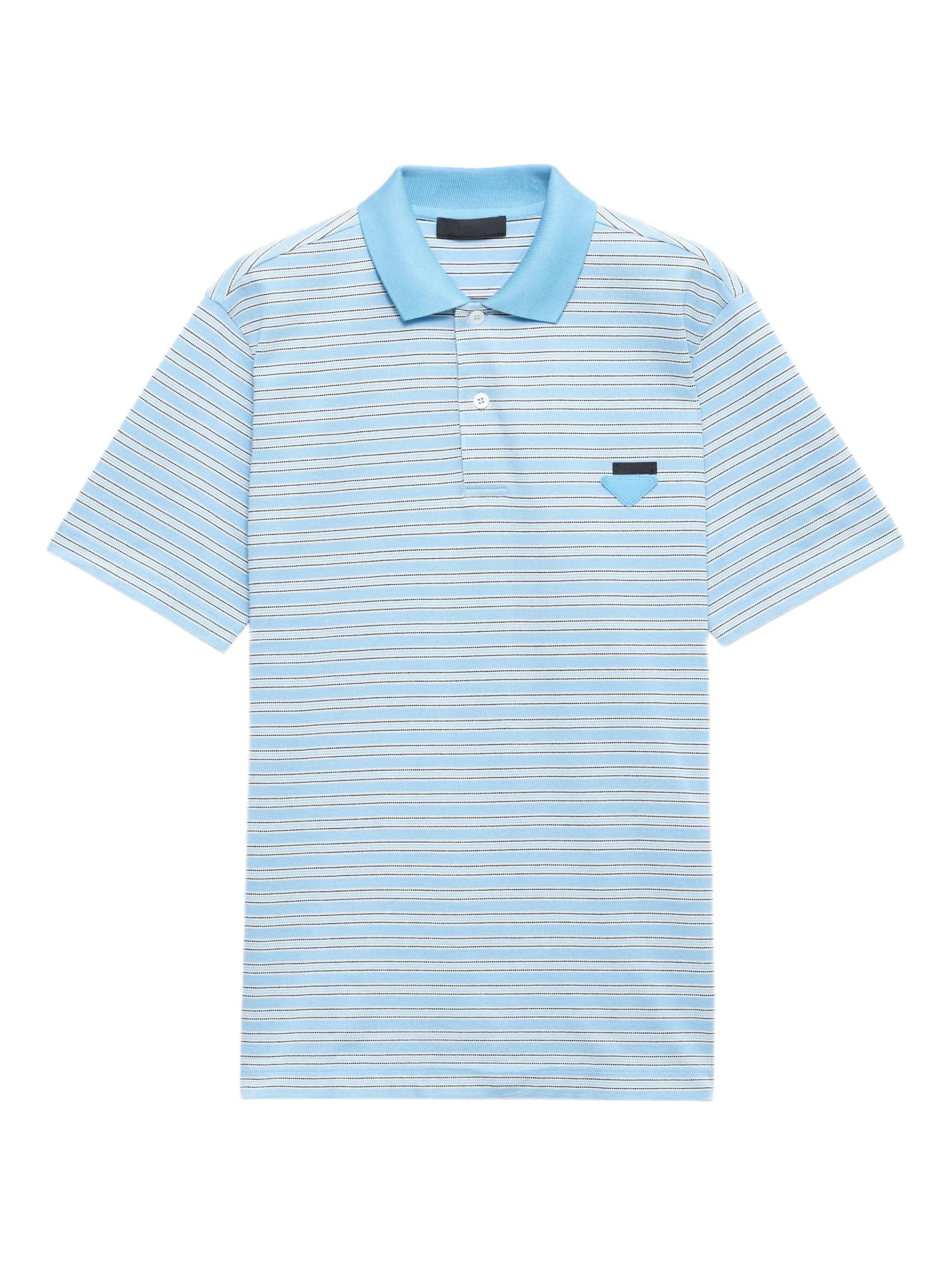 - baby blue - short front button fastening - horizontal stripe pattern - triangle logo - polo collar Materials & Product Care Cotton 100%