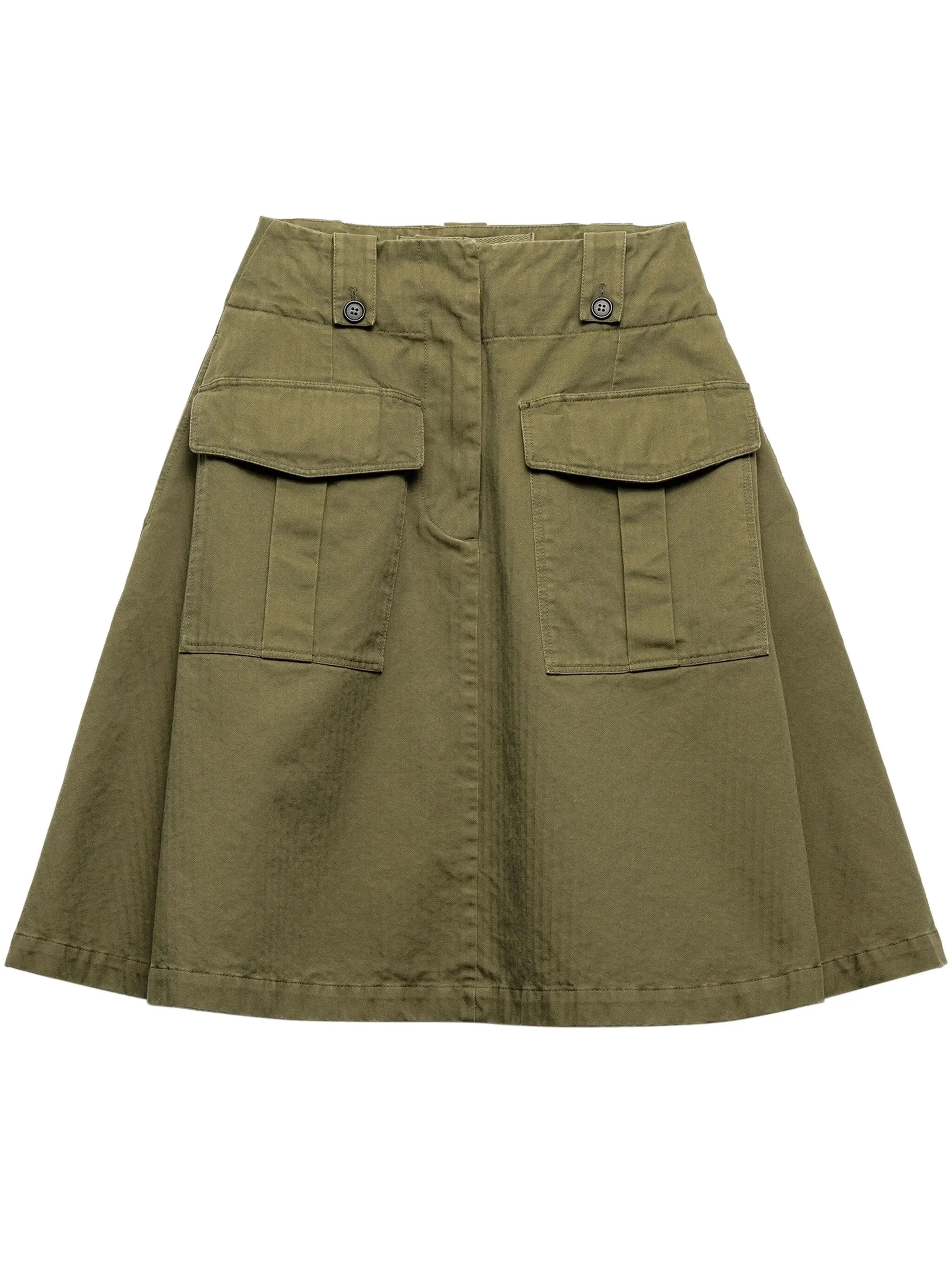 - green - concealed front zip fastening - two front cargo pockets - belt loops - high-waisted Materials & Product Care Cotton 100%
