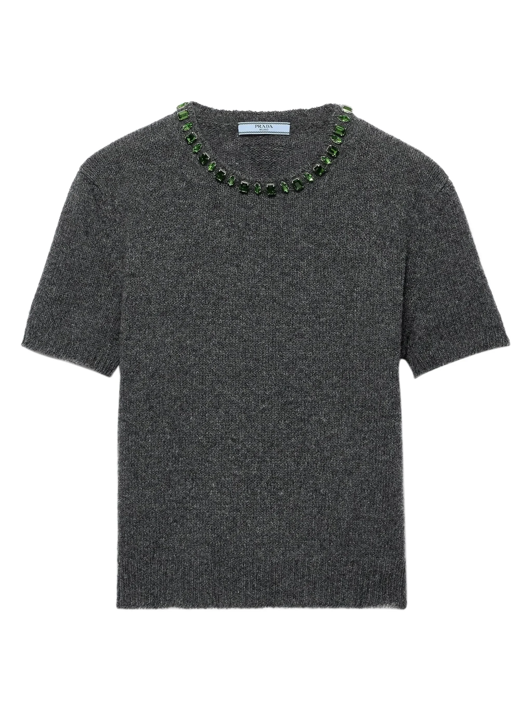 - grey - crystal embellishment - ribbed-knit trim Materials & Product Care Cashmere 30%, Crystal 100%, Virgin Wool 70%