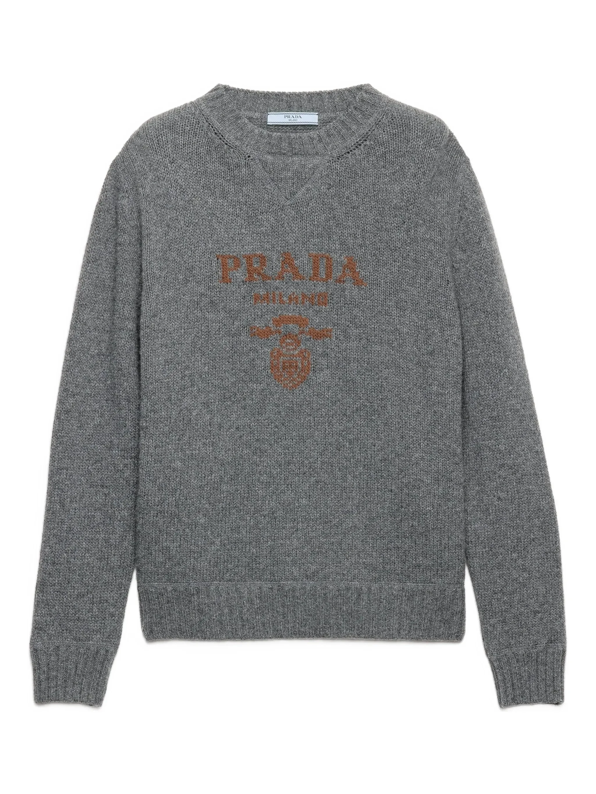 - grey - intarsia logo - ribbed knit trims - long sleeves - wool-cashmere blend Materials & Product Care Cashmere 30%, Virgin Wool 70%