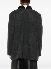 - dark grey - collared neckline - centre vent - straight hem - open front Materials & Product Care Virgin Wool 100% Size & Fit - The model is 1.80 m wearing size 38.