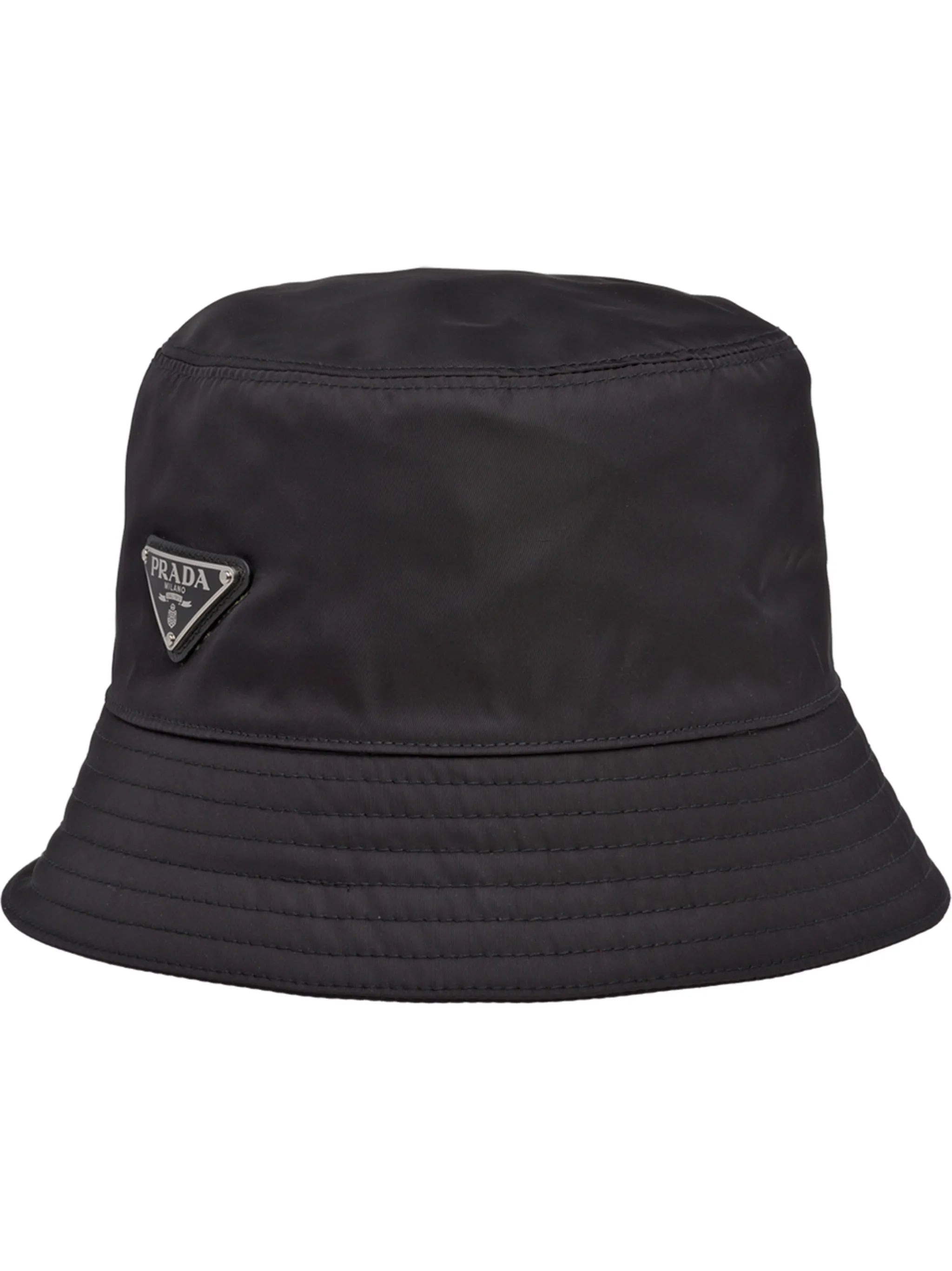 - black - recycled nylon - enamel triangle logo - silver-tone hardware - tonal stitching - dropped narrow brim Materials & Product Care Fabric 100%