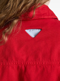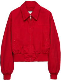 - bright red - front zip fastening - wide peak lapels - cut-out detailing - two side button-fastening pockets Materials & Product Care Cotton 100%