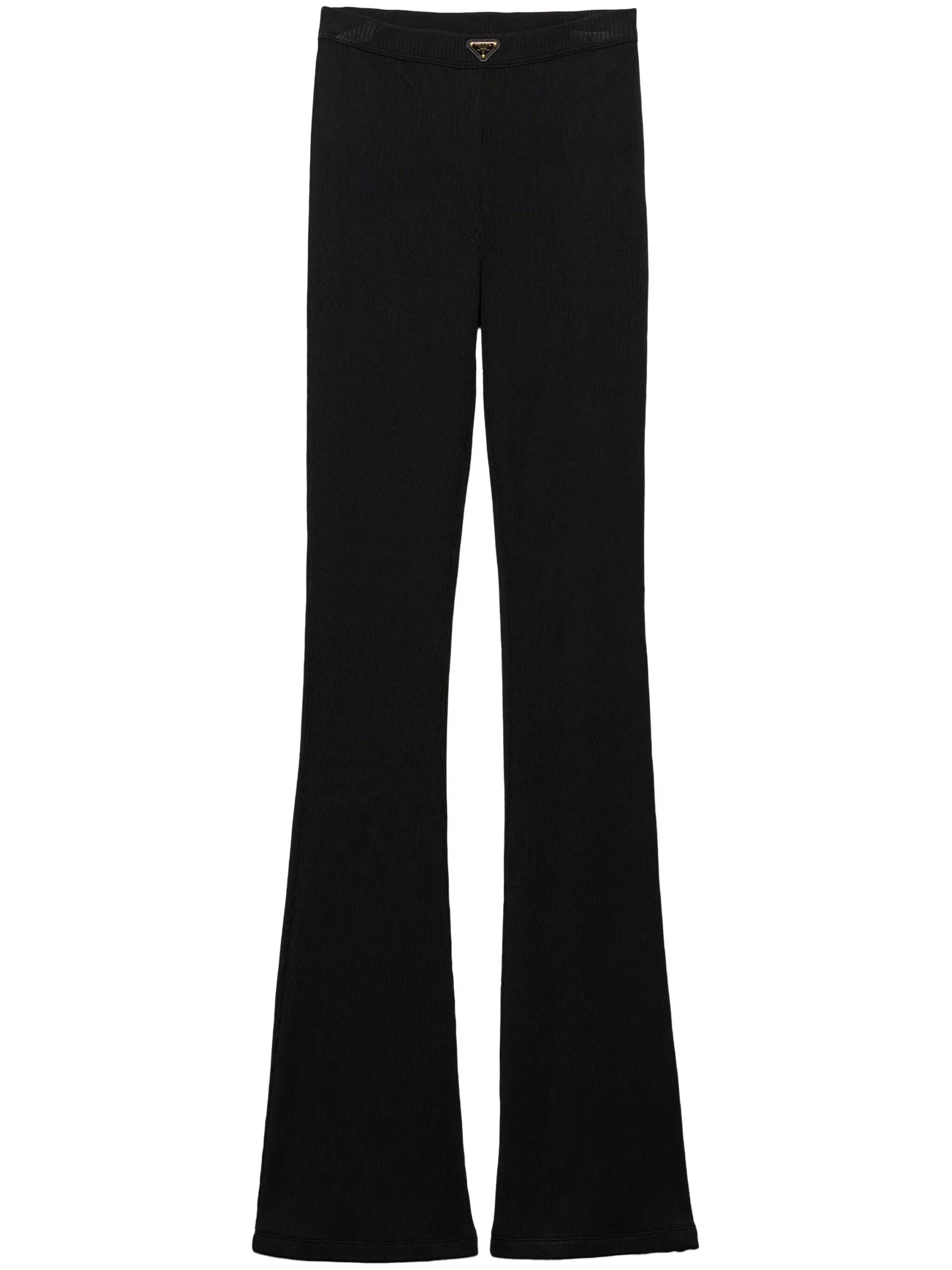 - black - jersey texture - ribbed knit - low-rise - elasticated waistband - triangle logo - flared hem Materials & Product Care Elastane 2%, Polyamide 12%, viscose 86%