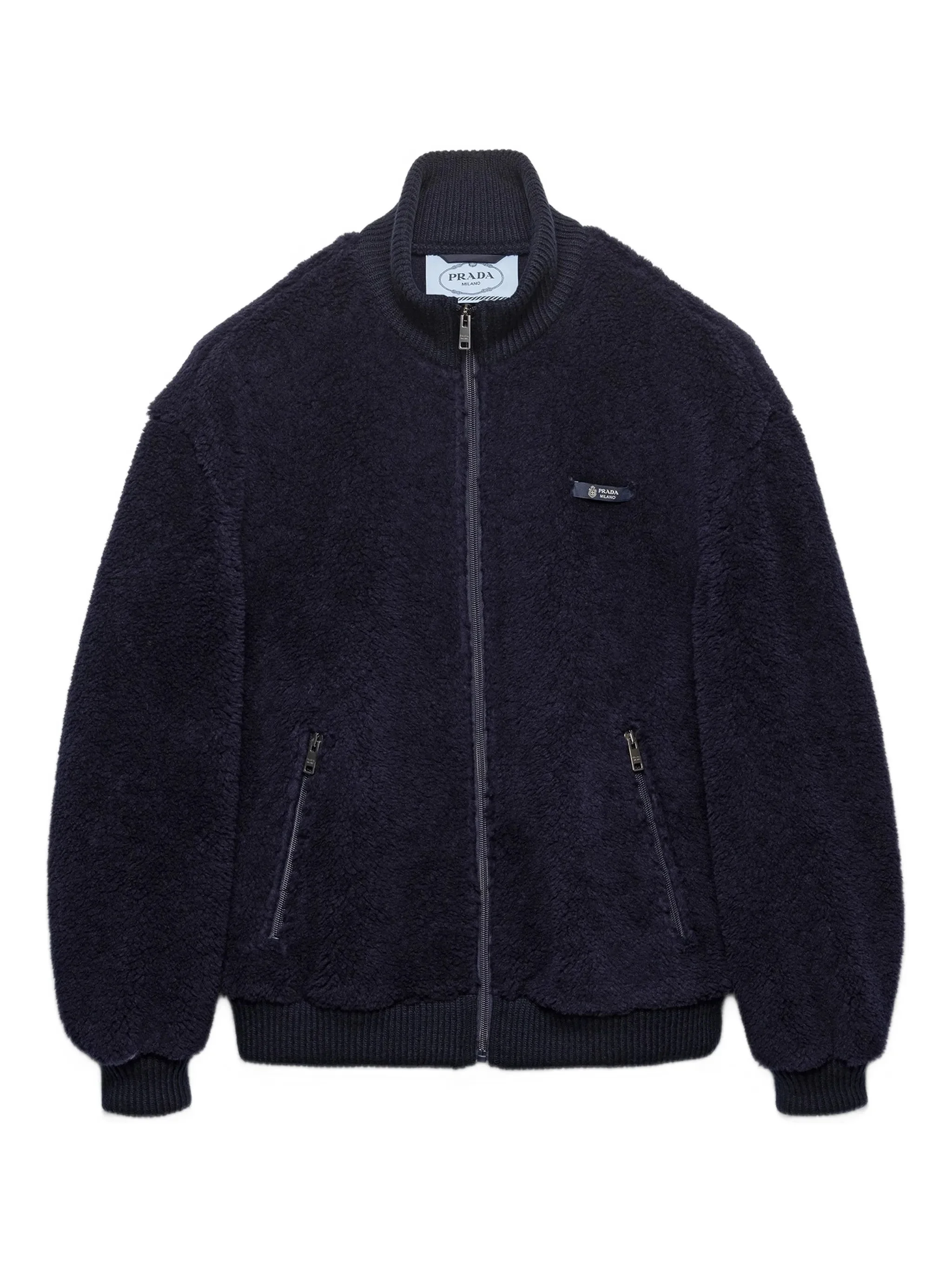 - blue - ribbed knit collar - long sleeves - ribbed knit cuffs - zip closure - zip pockets Materials & Product Care Polyamide 48%, Wool 52%