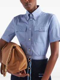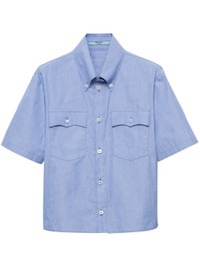 - cornflower blue - cotton - triangle logo - button-down collar - front button placket - short sleeves - two chest flap pockets - straight hem Materials & Product Care Cotton 100%