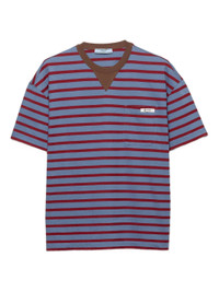 - blue and red - striped pattern - ribbed crew neck - short sleeves - front patch pocket - logo label Materials & Product Care Cotton 100%