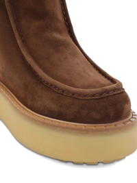 - brown - suede - shearling trim - pull-tab at the heel - round toe - branded insole - rubber sole - slip-on style Materials & Product Care Lining: Sheep Skin/Shearling 100% Outer: Calf Suede 100% Sole: Rubber 100%