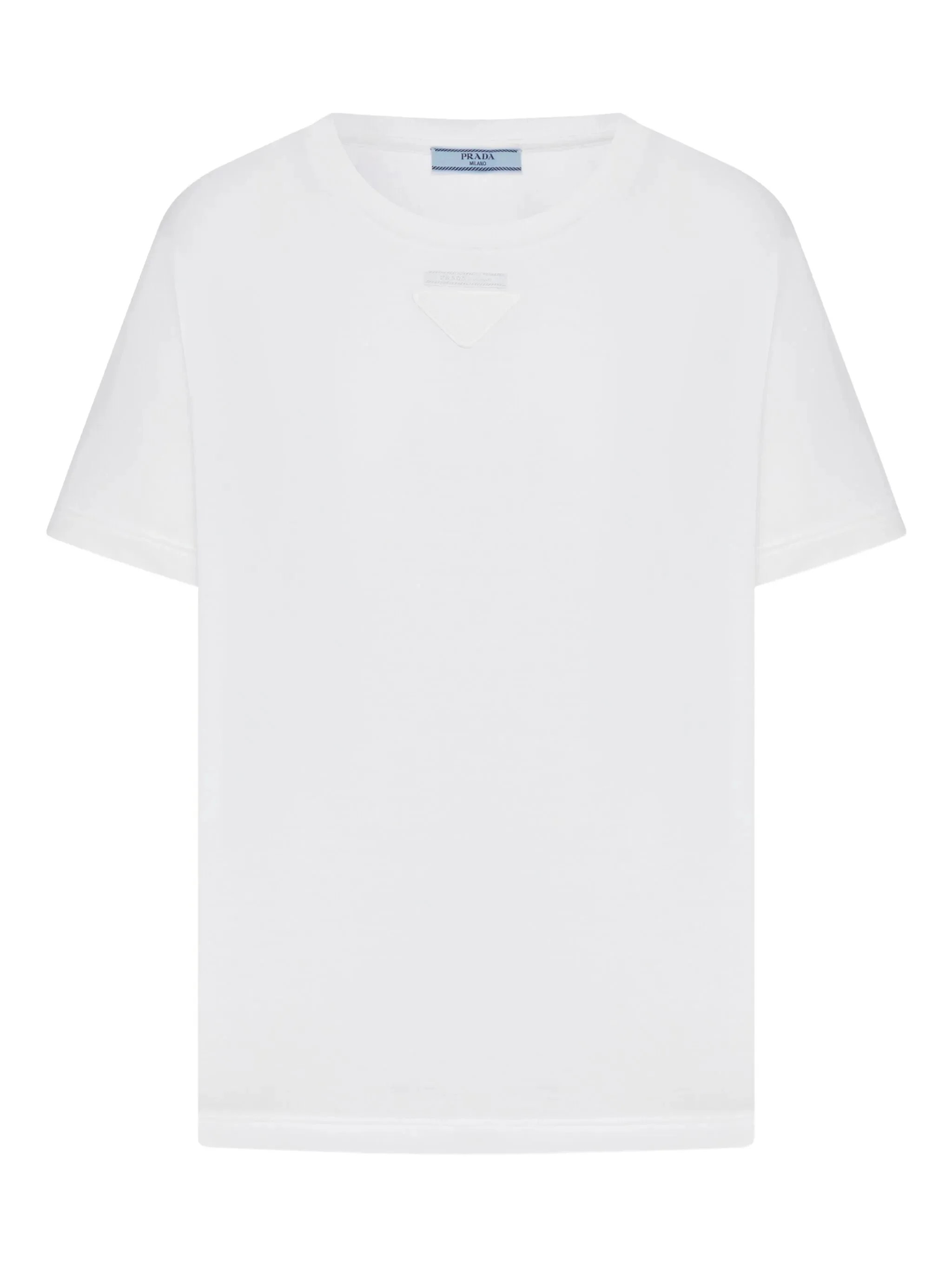 - white - cotton - jersey fabric - triangle logo - ribbed crew neck - short sleeves - sartorial label Materials & Product Care Cotton 100%