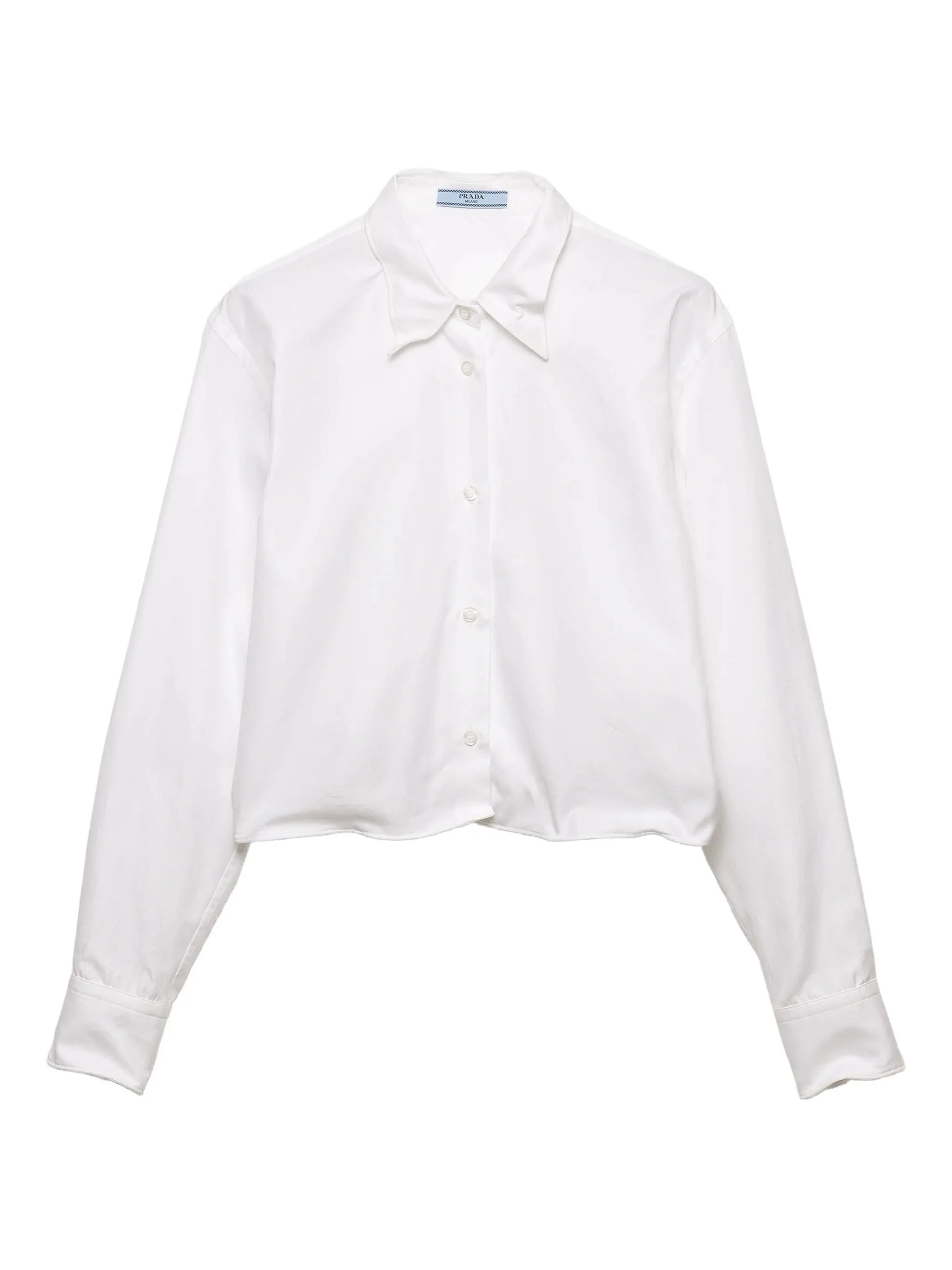 - white - triangle logo - classic collar - front button closure - long sleeves - cotton Materials & Product Care Cotton 100%