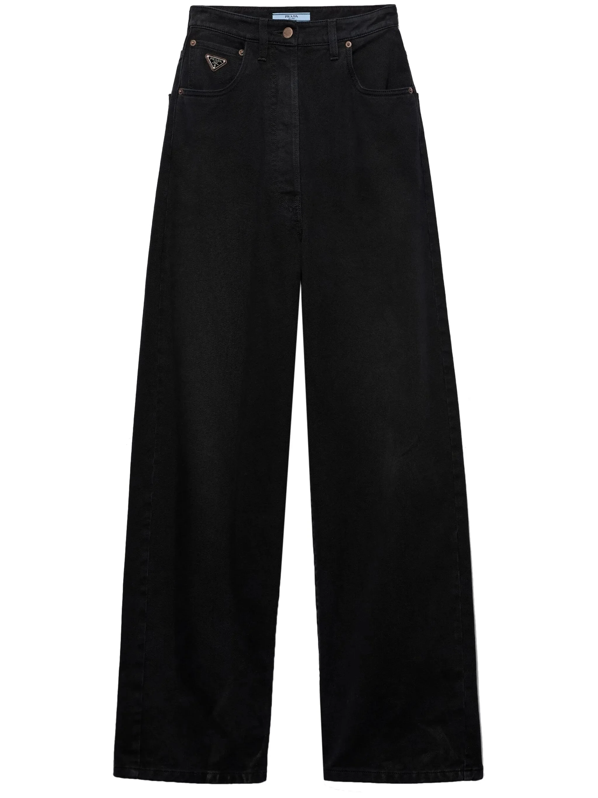 - black - cotton - denim - wide leg - concealed fly and button fastening - classic five pockets - enamel triangle logo Materials & Product Care Cotton 100%