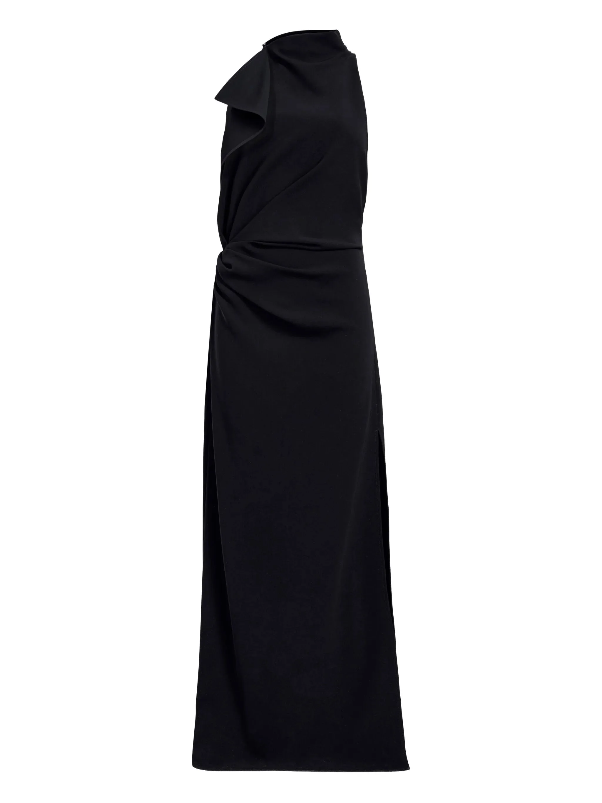 - black - concealed side zip fastening - draped design - long length Materials & Product Care Polyester 100%, Triacetate 100%