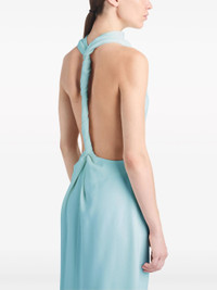 - pale blue - twisted strap on the back - cowl neck - sleeveless - A-line skirt - ankle-length Materials & Product Care Polyester 30%, Triacetate 70%