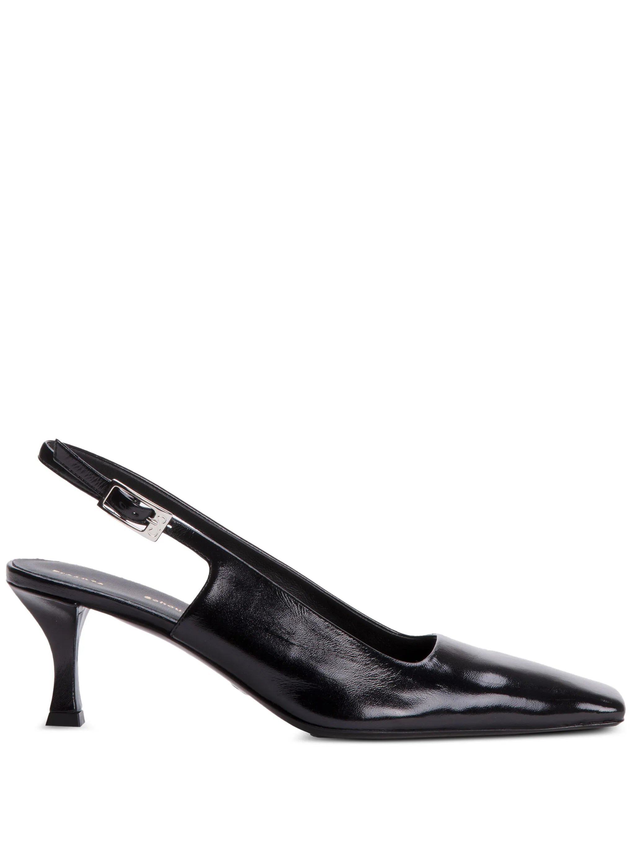 - black - leather - patent finish - square toe - buckle-fastening slingback strap - branded leather insole - mid sculpted heel - leather sole Materials & Product Care Lining: Leather 100% Outer: Leather 100% Sole: Leather 100%