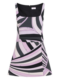- pink black - abstract print - square neck - sleeveless - A-line skirt - concealed zip fastening Materials & Product Care Elastane 4%, viscose 96%