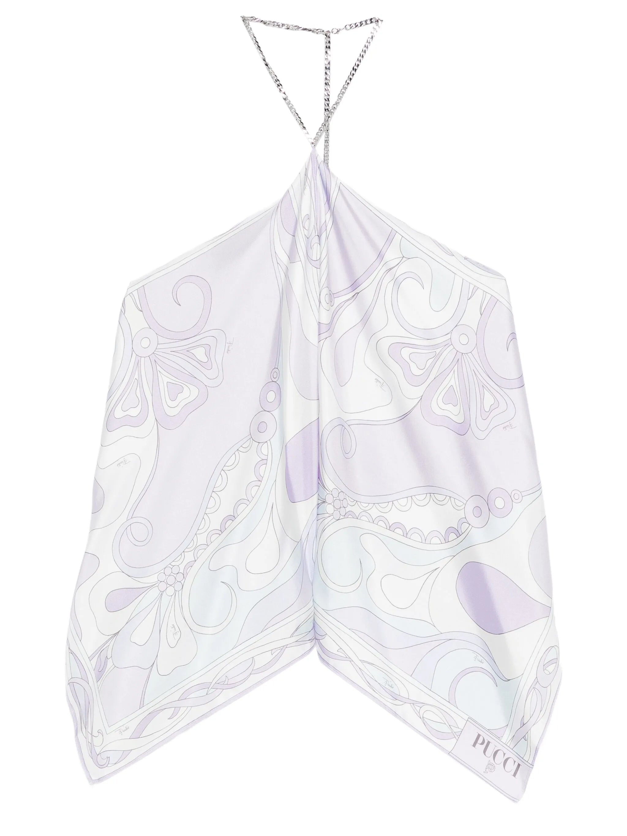 - lavender - silk twill - open back - chain straps - sleeveless - all-over graphic print Materials & Product Care Silk 100% Size & Fit - The model is 1.73 m wearing size OS.