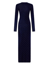 - navy blue - all-over beading - round neck - fitted sleeves - floor-length design Materials & Product Care Wool 100%