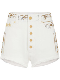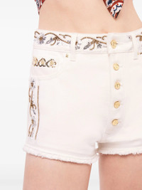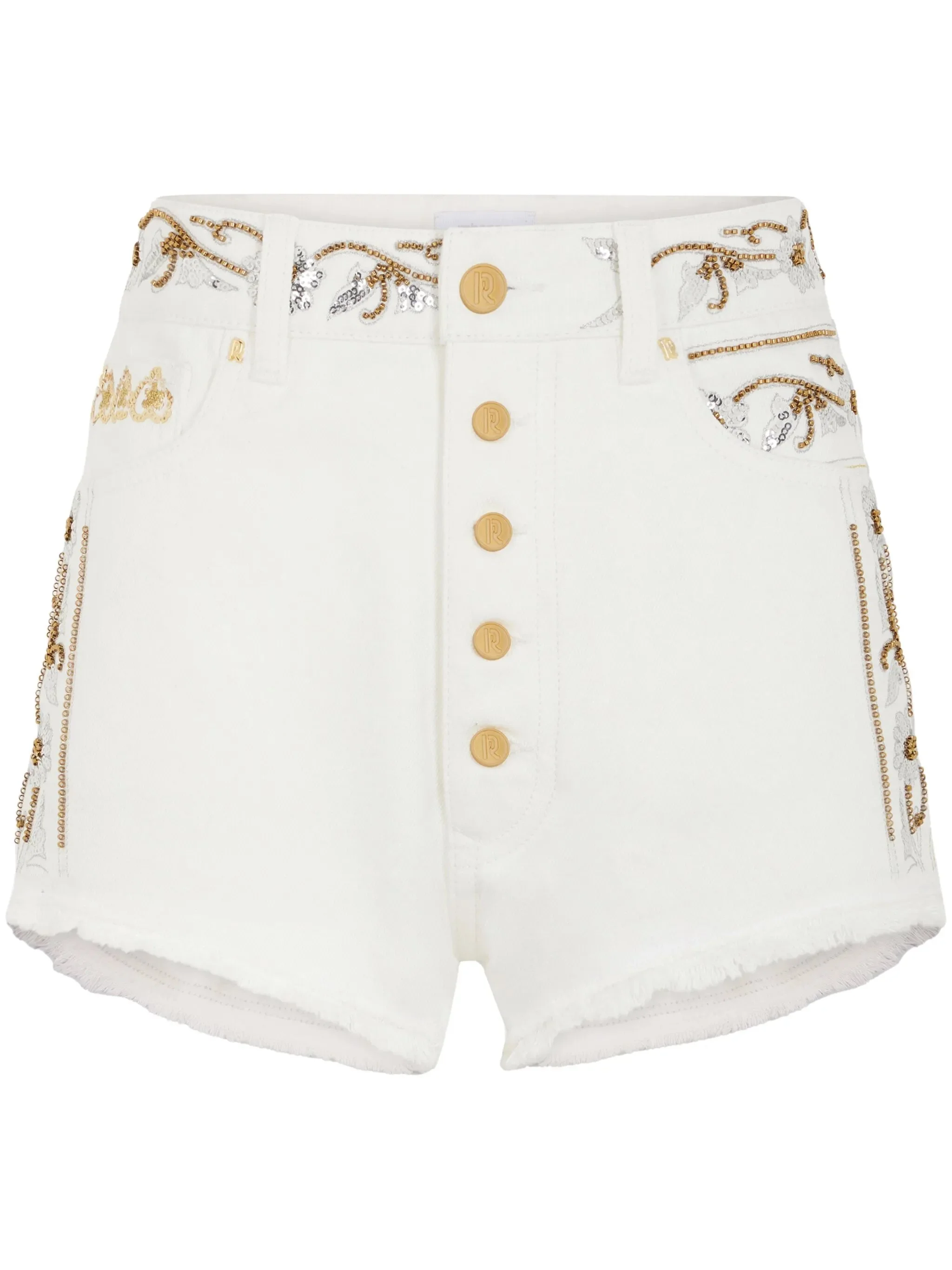 - off-white - cotton - denim - embroidered design - sequin embellishment - bead detailing - belt loops - button fly fastening - classic five pockets - frayed edge Materials & Product Care Cotton 100%