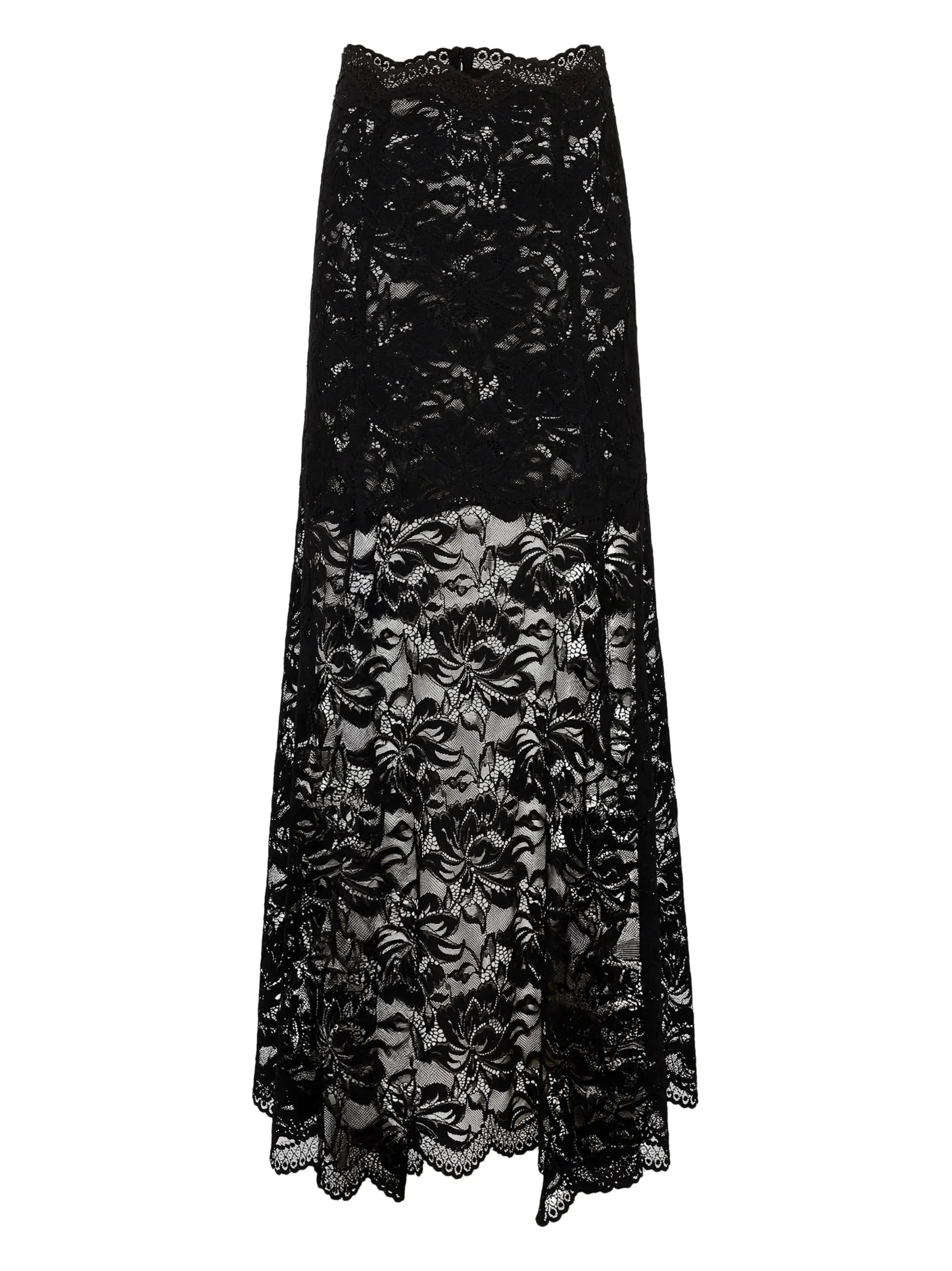 - black - lace detail - flared hem - scalloped trim - long length - sheer design Materials & Product Care Elastane 10%, Polyamide 90%