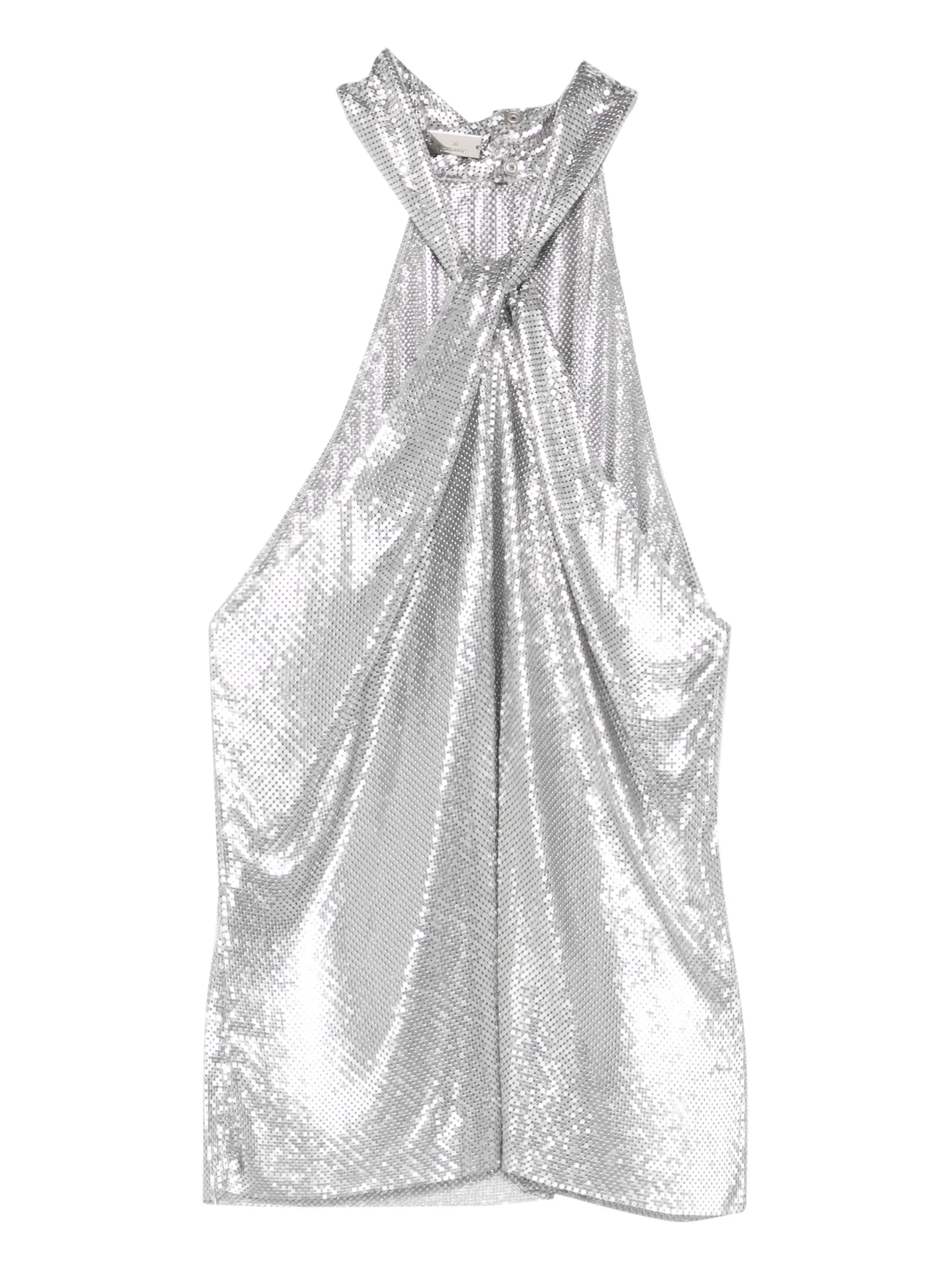 - silver - mesh design - twist detail - halterneck Materials & Product Care Aluminium 100% Size & Fit - The model is 1.78 m wearing size 36.