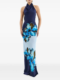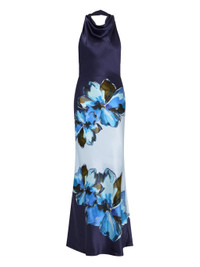 - navy blue - side zip fastening - rear button fastening - halterneck - cowl neck Materials & Product Care Lining: Polyester 97%, Spandex/Elastane 3% Outer: Silk 100%