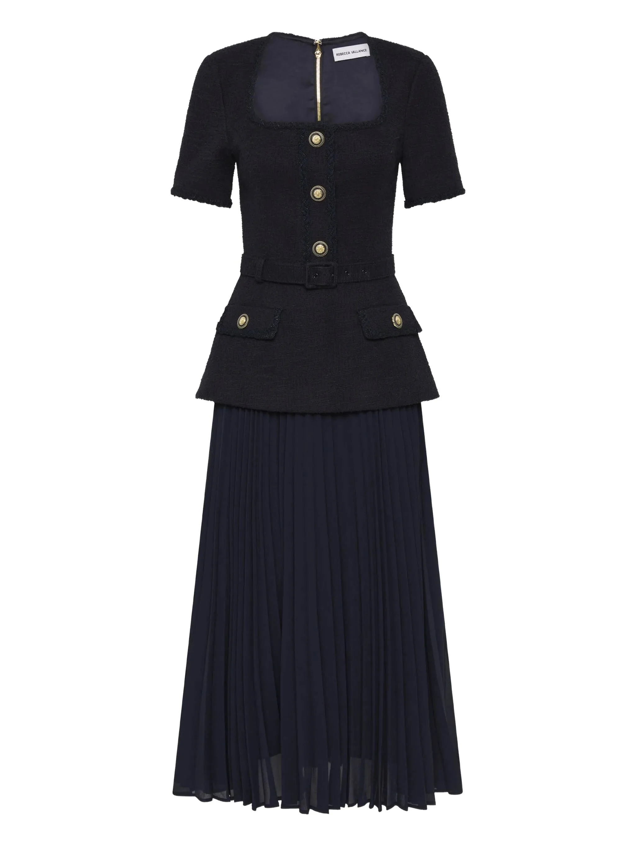 - navy blue - front button fastening - rear zip fastening - detachable waist belt - two front flap pockets Materials & Product Care Fabric 100%