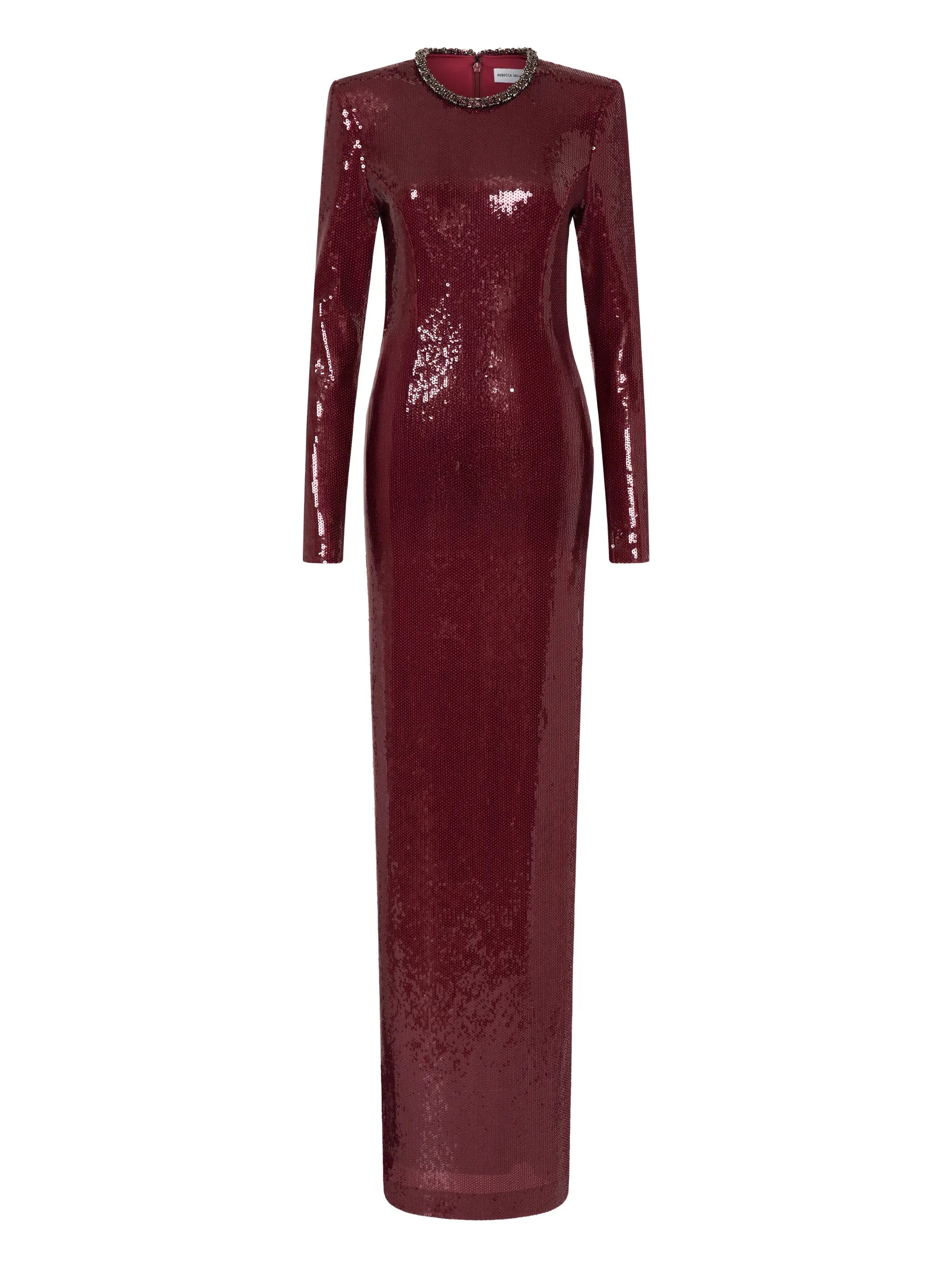 - wine - sequin embellishment - long sleeves - round neck - back slit Materials & Product Care Elastane 10%, Polyester 90%