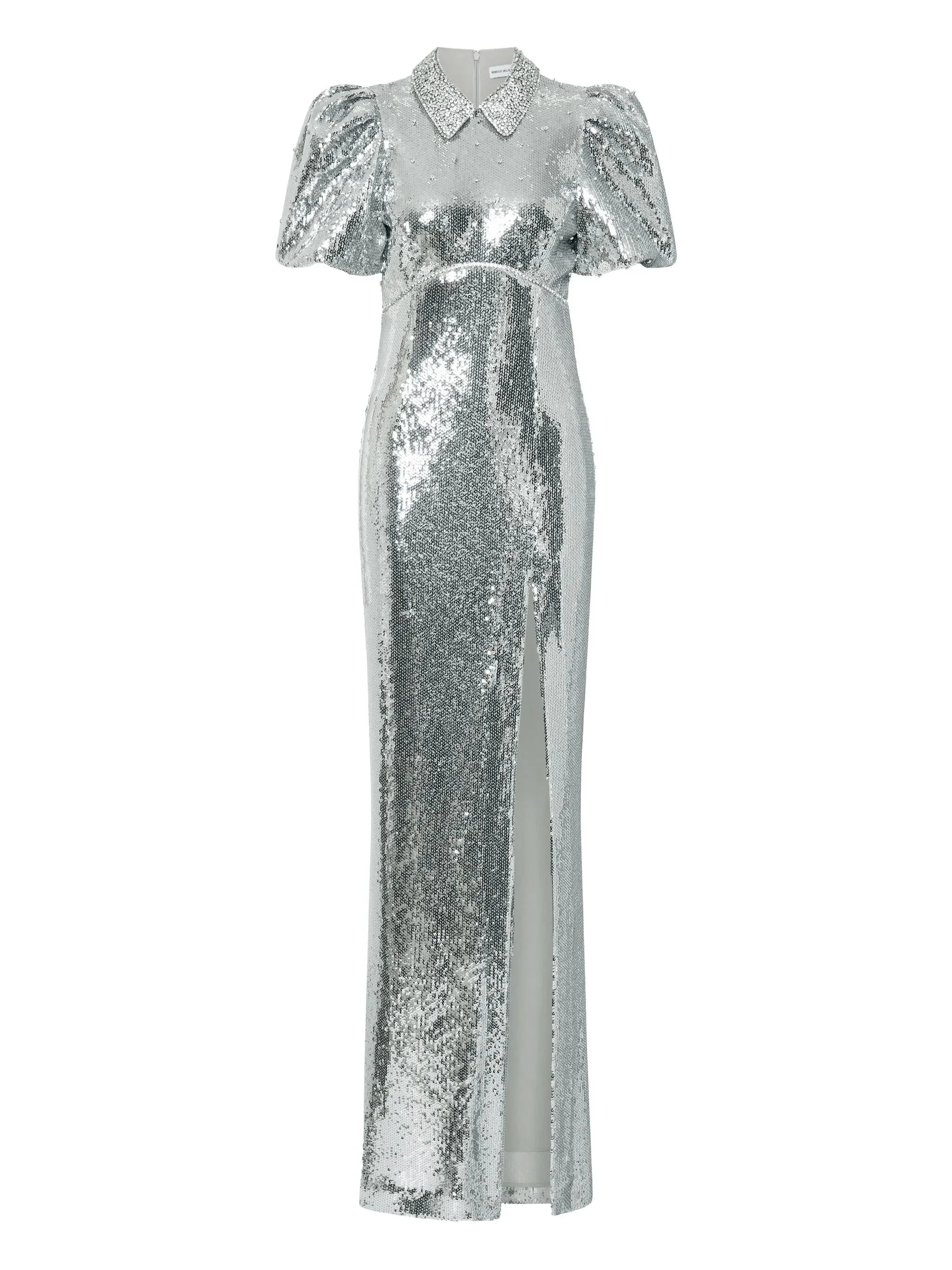 - silver - sequin embellishment - short sleeves - zip fastening Materials & Product Care Elastane 10%, Polyester 90%