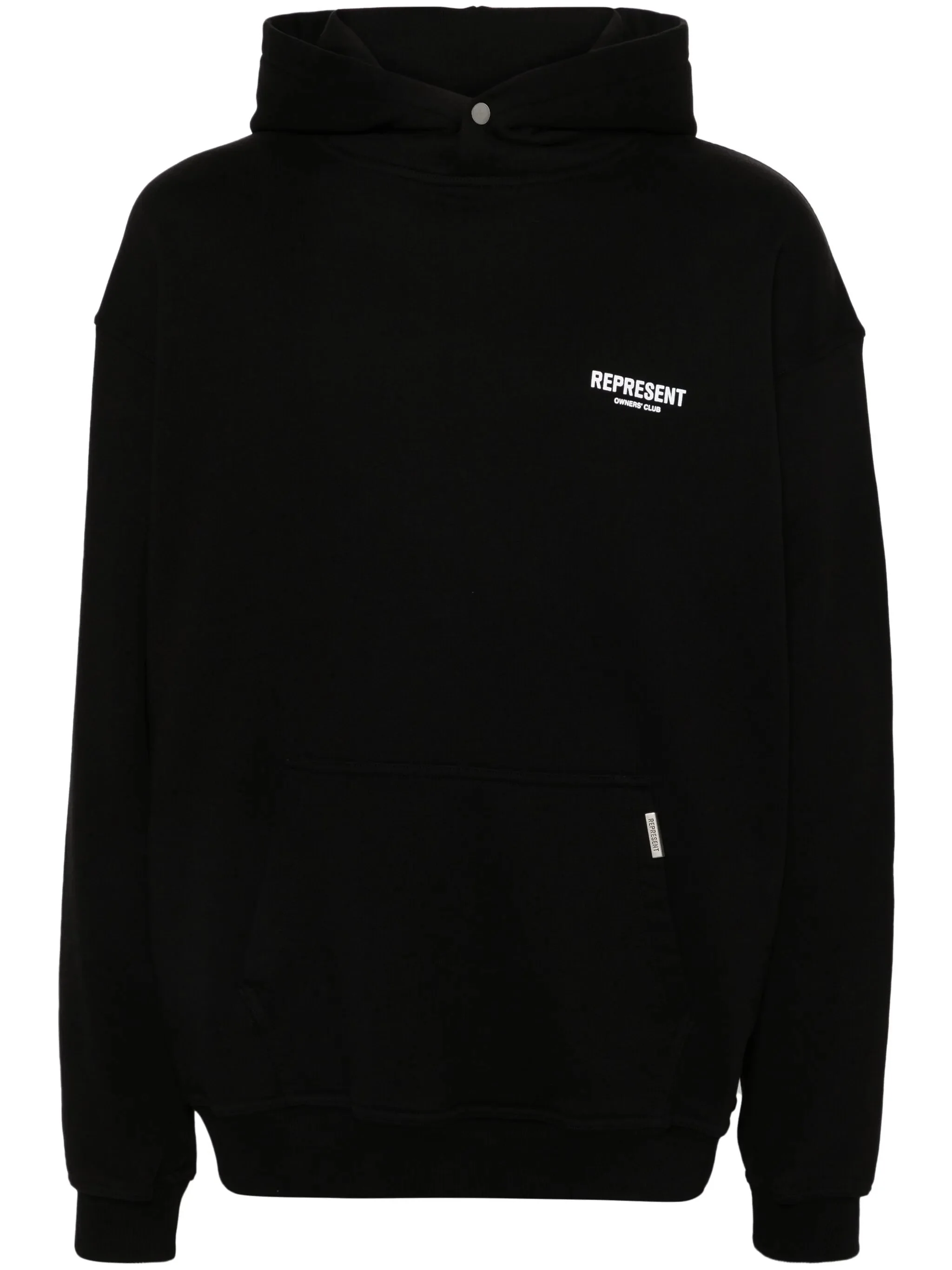 - black - cotton - stretch-jersey - classic hood - long sleeves - ribbed cuffs and hem - logo print to the front - front pouch pocket with silver-tone logo plaque - straight hem Materials & Product Care Cotton 100% Size & Fit - The model is 1.87 m wearing size L.