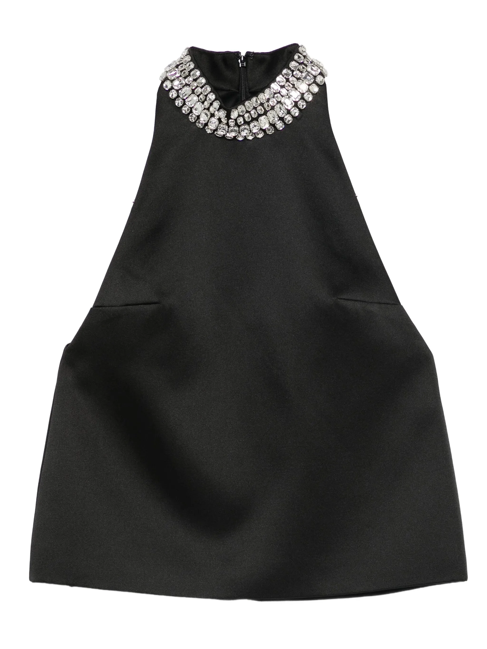 - black - embellishment at the neck - sleeveless - zip fastening at the rear - mock neck Materials & Product Care Lining: Polyester 97%, Spandex/Elastane 3% Outer: Polyester 85%, viscose 15% Size & Fit - The model is 1.78 m wearing size S.