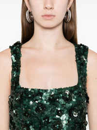 - pine green - sequin embellishment - floral detail - square neck - sleeveless - zip fastening Materials & Product Care Lining: Nylon 82%, Spandex/Elastane 16% Outer: Nylon 82%, Spandex/Elastane 16%
