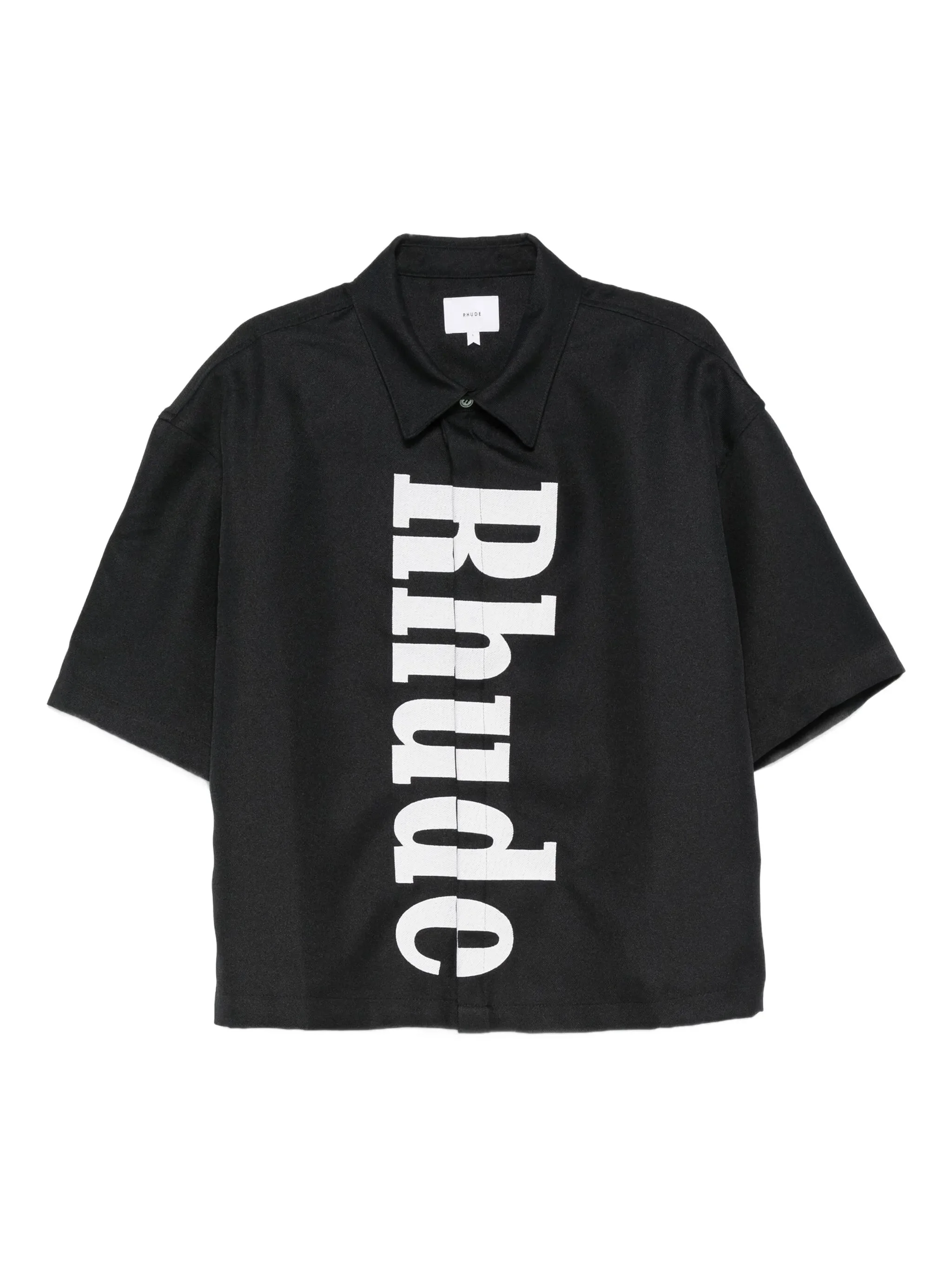 - black - short sleeves - pointed collar - button fastening - vertical logo print Materials & Product Care Polyester 100% Size & Fit - The model is 1.84 m wearing size L.