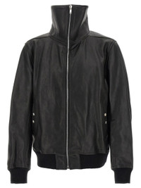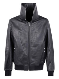 - black - calf leather - front-zip closure - foldable turtleneck - ribbed knit cuffs - ribbed knit hem - pockets Materials & Product Care Calf Leather 100%