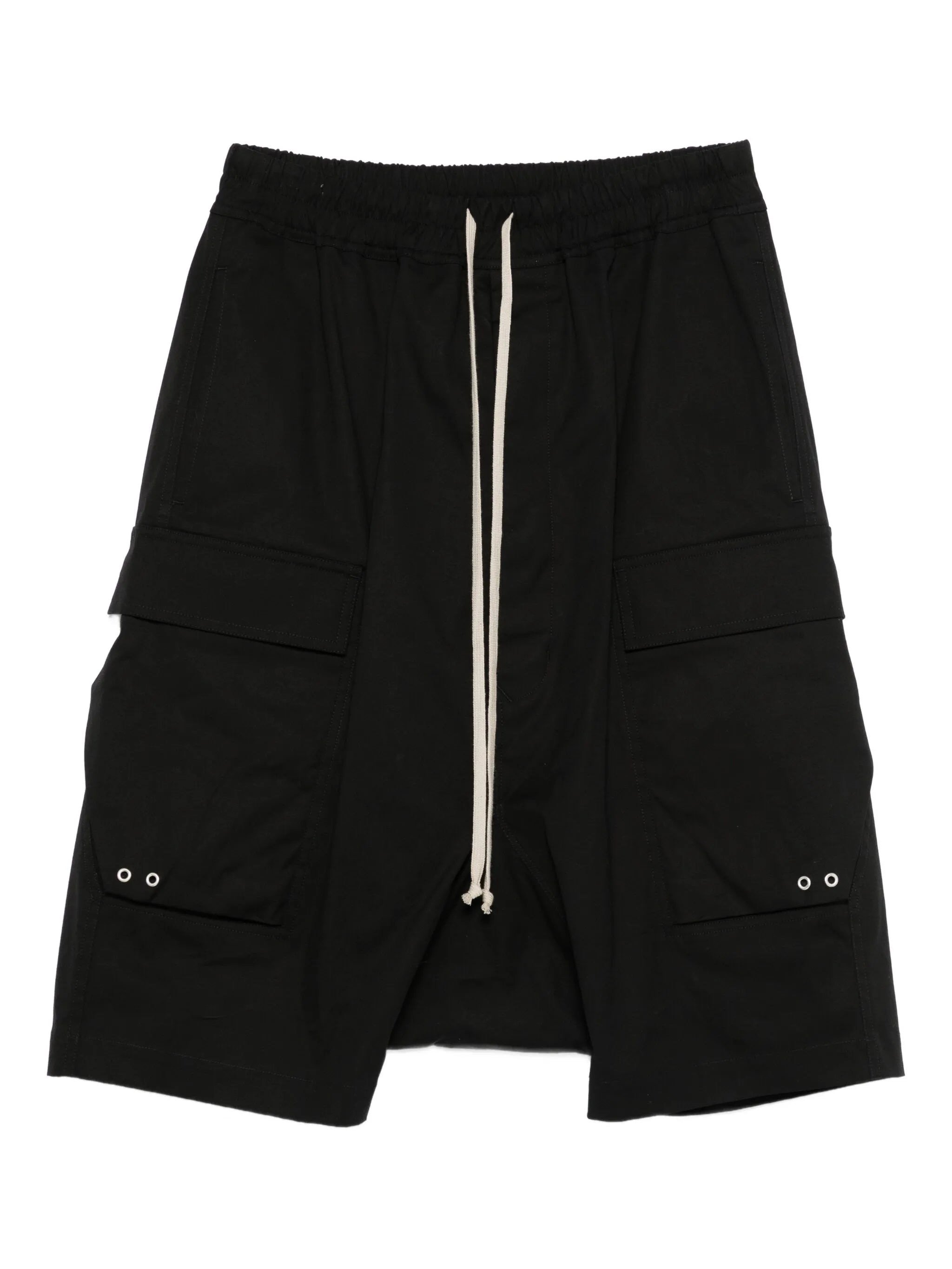 - black - drawstring waist - two side slit pockets - two side cargo pockets Materials & Product Care Elastane 3%, Organic Cotton 97% Size & Fit - Designed with a dropped crotch, offering a loose and relaxed fit - Made from a midweight stretch fabric, this piece offers elasticity and flexibility when worn - The elasticated waist allows for a comfortable fit - The model is 1.87 m wearing size 48.