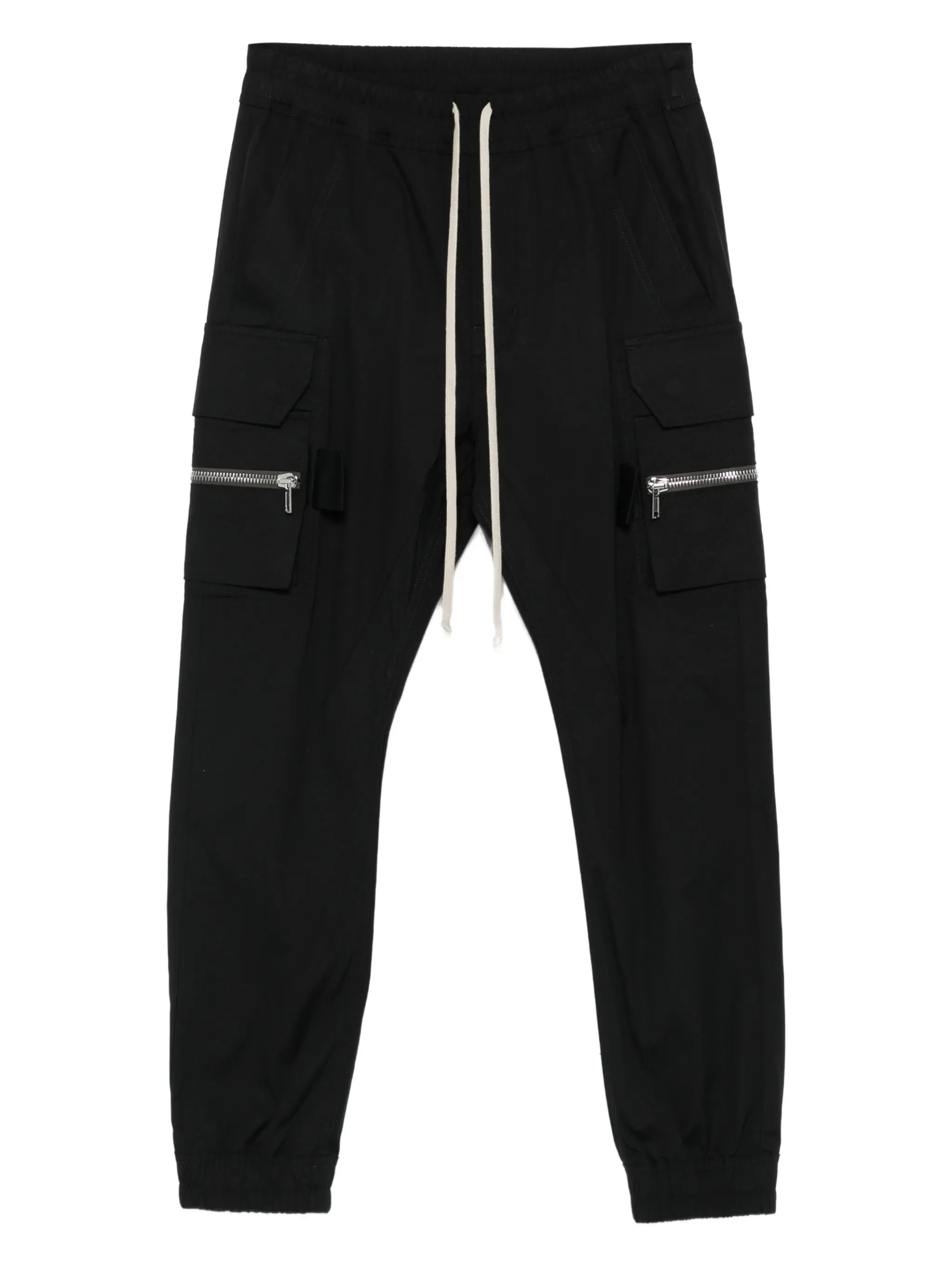 - black - drawstring fastening - side cargo pockets - zip detail - elasticated hem Materials & Product Care Elastane 3% Outer: Cotton 97% Size & Fit - The model is 1.87 m wearing size 48.