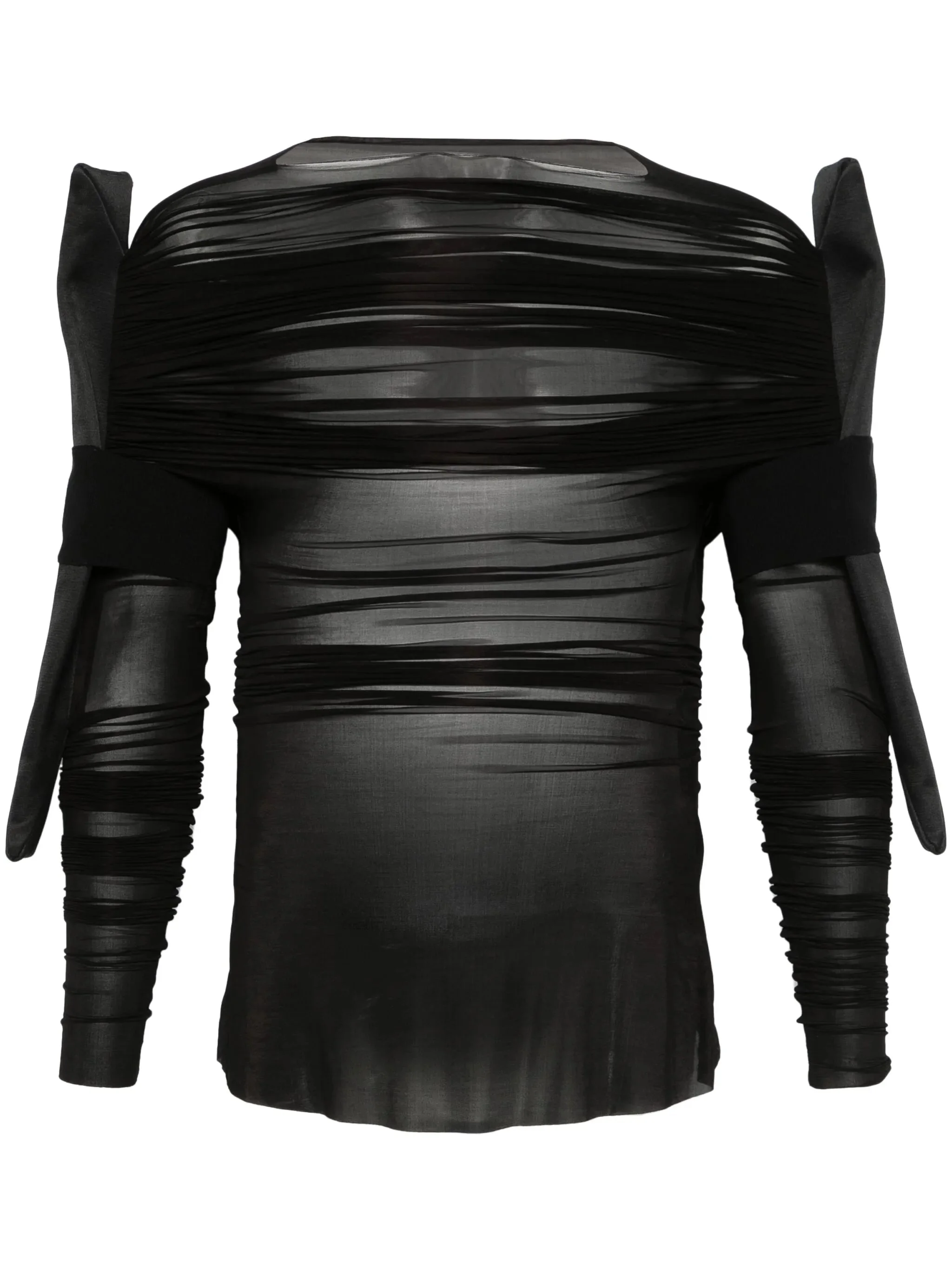 - black - boat neck - padded panels - long sleeves - straight hem Materials & Product Care Cotton 81%, Cupro 92%, Elastane 8%, Silk 19%, Wool 100% Size & Fit - Designed for a close fit throughout - Made from a lightweight stretch fabric, this piece offers elasticity and flexibility when worn - The model is 1.87 m wearing size M.